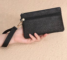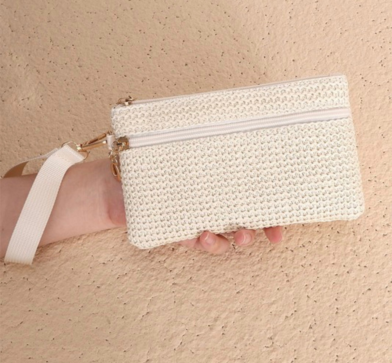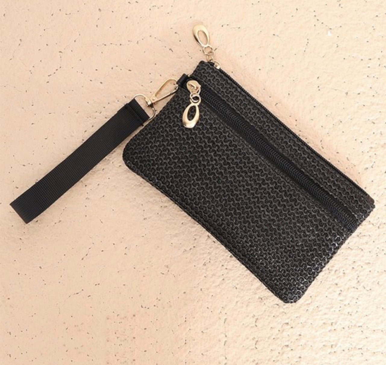 This stunning Woven Straw Wristlet brings together natural texture and stylish functionality. Crafted from woven straw and fully lined for durability, this wristlet is perfect for carrying essentials with ease. Its compact design and secure wrist strap make it an ideal accessory for a casual day out or a summer evening event, adding a touch of relaxed elegance to any outfit.