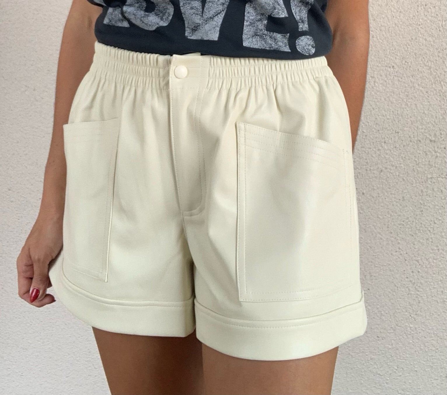 Elevate your style effortlessly with these Faux Leather Shorts featuring a comfortable elastic waist. Designed for a sleek, modern look, they offer both flexibility and a flattering fit. Perfect for day-to-night wear, these shorts combine edgy fashion with all-day comfort, making them a versatile addition to your wardrobe.
