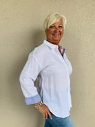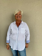 Effortlessly chic and comfortable, this Drop Shoulder 3/4 Roll-Up Sleeves Shirt with Contrast Cuffs is the perfect addition to your wardrobe. Made from a soft blend of 55% Linen and 45% Rayon, it offers a breathable and lightweight feel ideal for all-day wear. The drop shoulder design creates a relaxed, easygoing fit, while the 3/4 roll-up sleeves with contrast cuffs add a stylish, modern twist. Whether dressed up with trousers or paired casually with jeans, this shirt provides a versatile and fashionable option for any occasion.