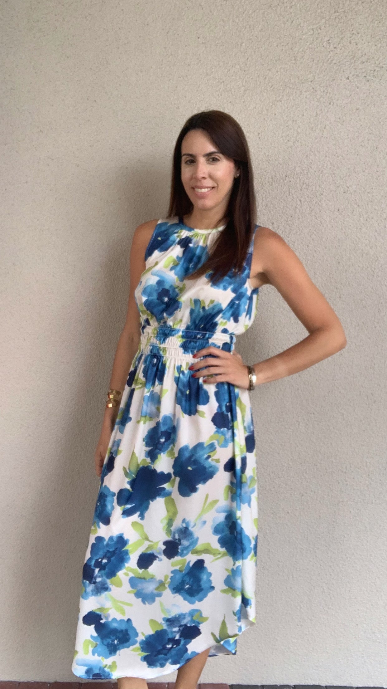 This Printed Satin Sleeveless Dress exudes elegance and comfort, making it a perfect choice for any occasion. Crafted from 100% polyester, the fabric offers a luxurious sheen and smooth texture. The sleeveless design keeps it light and airy, while the elastic smocking at the waist creates a flattering, cinched silhouette. The all-over print adds a playful, modern touch, making this dress both stylish and versatile.