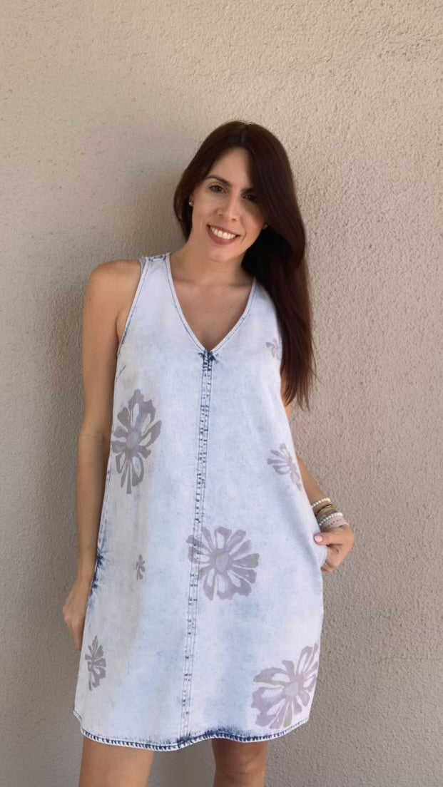 Effortlessly chic and endlessly versatile, the Floral Printed Denim Shift Dress is a fresh take on casual elegance. Crafted from 100% cotton, this dress combines the structured feel of denim with a soft, breathable touch. The V-neckline adds a flattering touch, while the side zipper ensures a seamless fit. Designed in a thigh-length silhouette, this shift dress offers an easy, relaxed feel that pairs perfectly with sneakers for daytime outings or sandals for a more polished look.