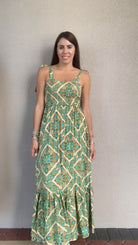 Make a statement in our Printed Smocked Chest Shoulder Tie Maxi Dress! With a flattering smocked chest and trendy shoulder ties, this dress is both comfortable and stylish. Perfect for any occasion, the bold print adds a touch of flair to your wardrobe.