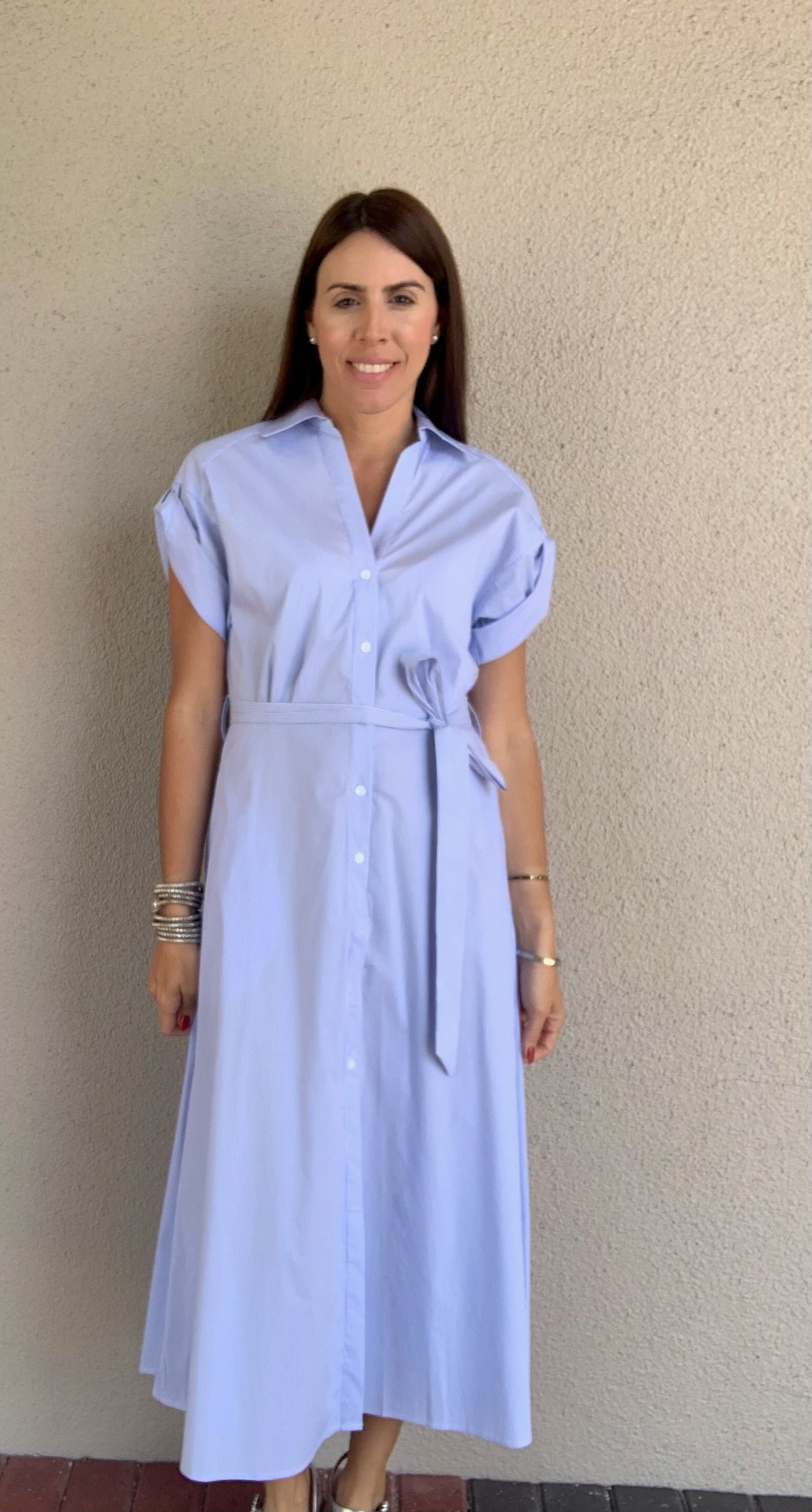 Short Sleeve Button Front Midi Dress with Matching Tie Belt