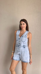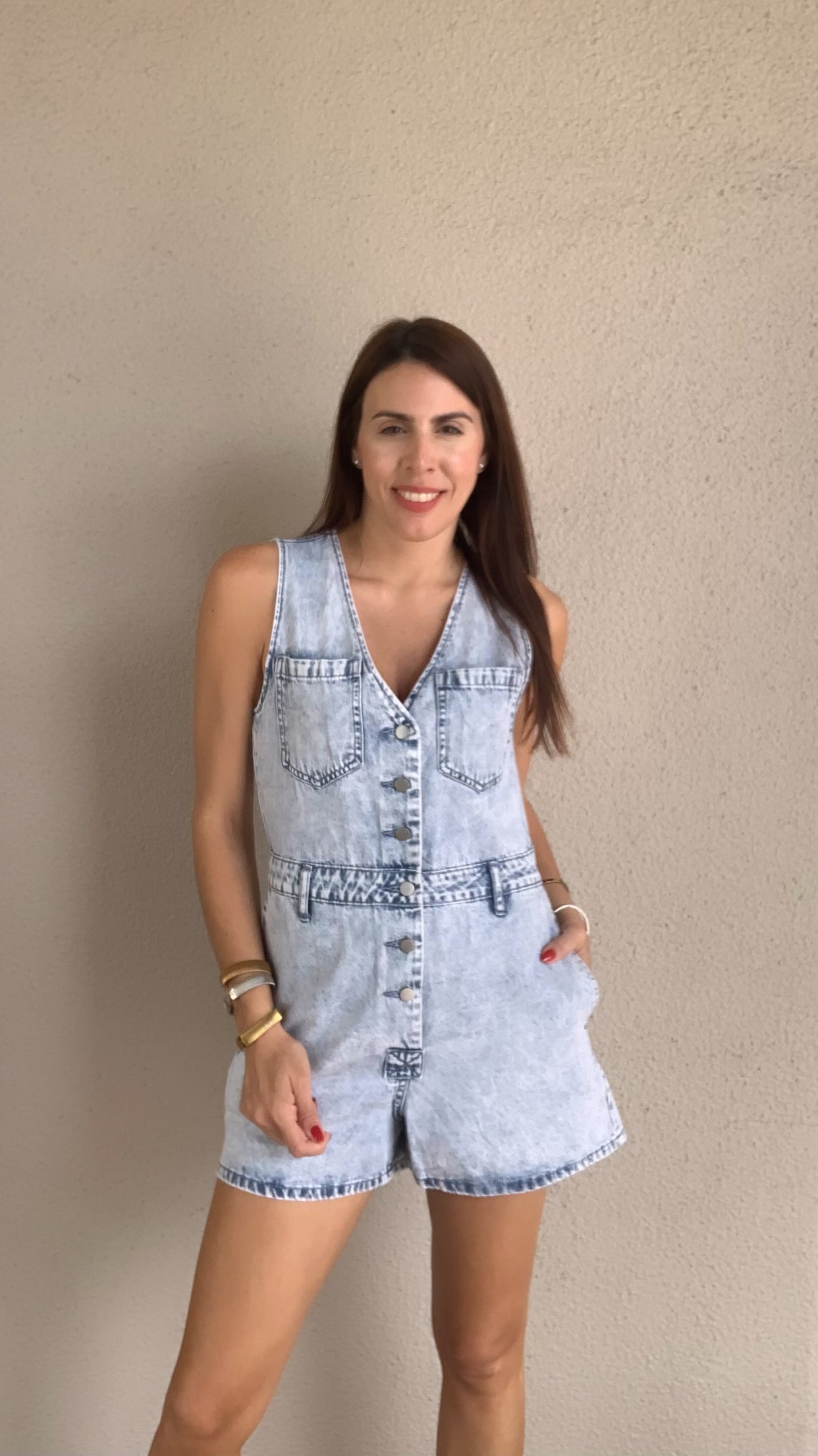 The Sleeveless Denim Romper is the perfect blend of casual chic and effortless style. Crafted from 100% cotton, this lightweight denim piece offers breathable comfort with a structured yet relaxed fit. Featuring a flattering V-neckline and a classic button-down front, it creates a timeless silhouette that’s both easygoing and stylish. Functional bust and side pockets add a practical touch, while the thigh-length cut keeps it playful and versatile. Whether paired with sneakers for a laid-back day or dressed up with sandals and accessories, this romper is a must-have for warm-weather dressing.
