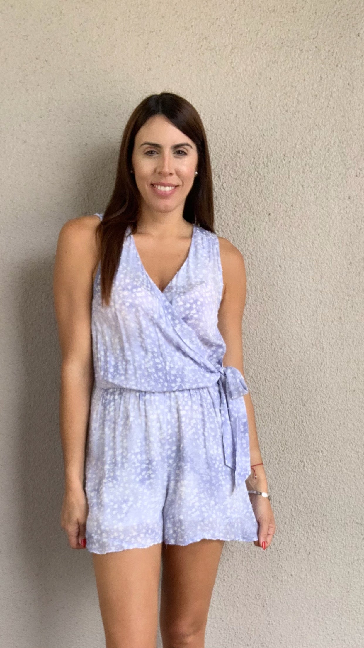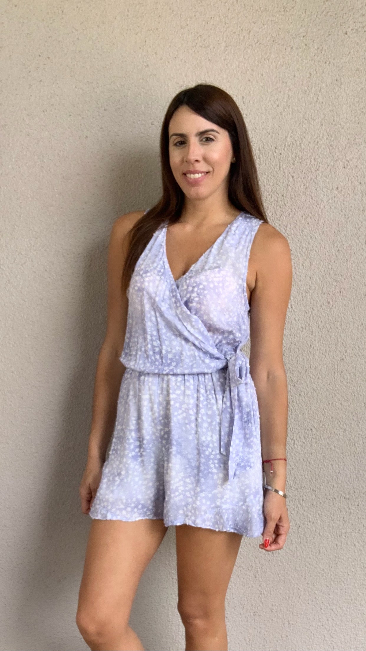 Swiss Dot Tie-Dye Surplice Front Romper