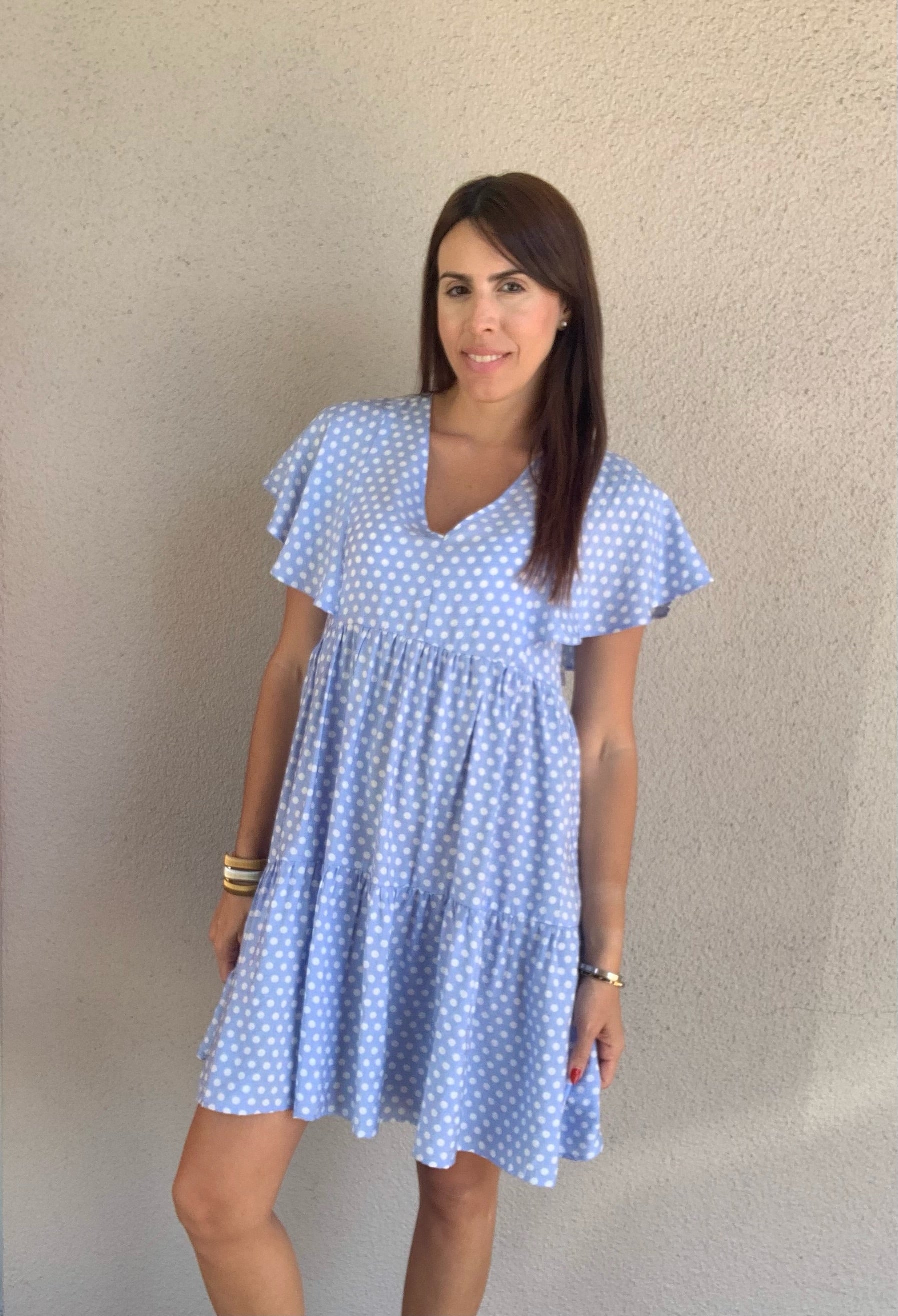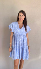 Playful, breezy, and full of charm — the Tiered Polka Dot Short Flared Sleeve Dress is made for carefree days and twirl-worthy moments. Covered in a classic polka dot print, this short dress features a flattering V neckline and flared short sleeves that add to its feminine appeal.