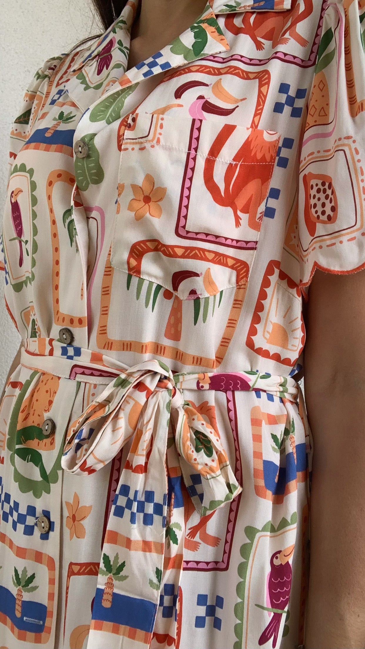 Expertly crafted from 100% rayon, this Tropical Print Button Front Shirt Dress is a must-have for any fashion-forward individual. The scalloped edges add a touch of elegance to the vibrant tropical print, making it perfect for any occasion. Upgrade your wardrobe with this versatile and stylish dress today.