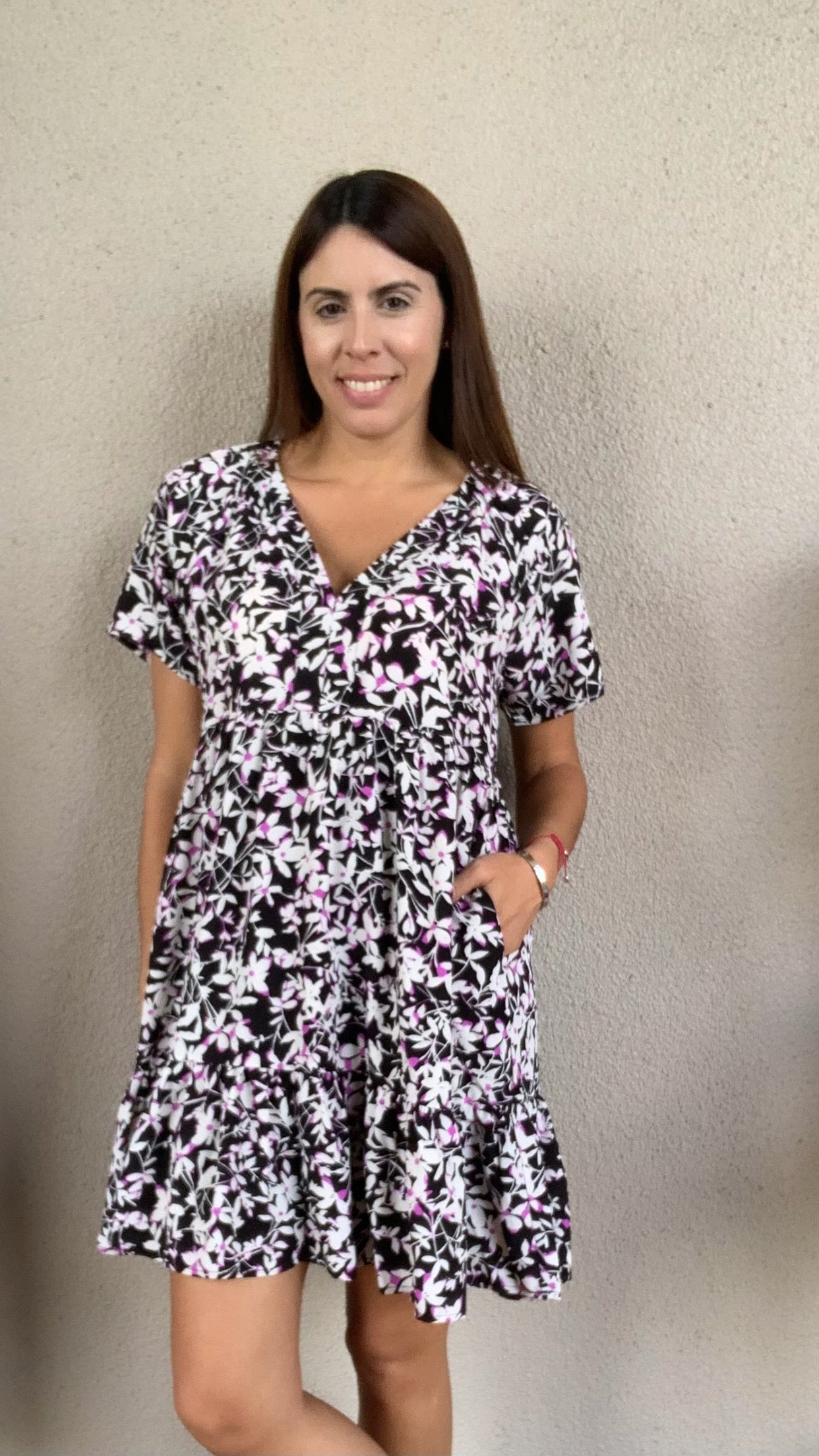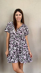 Elevate your wardrobe with this V-neck short sleeve dress featuring a delicate floral print and a flattering tiered design. Fully lined for comfort and modesty, it offers a lightweight feel perfect for warm days or special occasions. The feminine silhouette and breathable fabric make it an effortless choice to stay stylish and comfortable all day long.