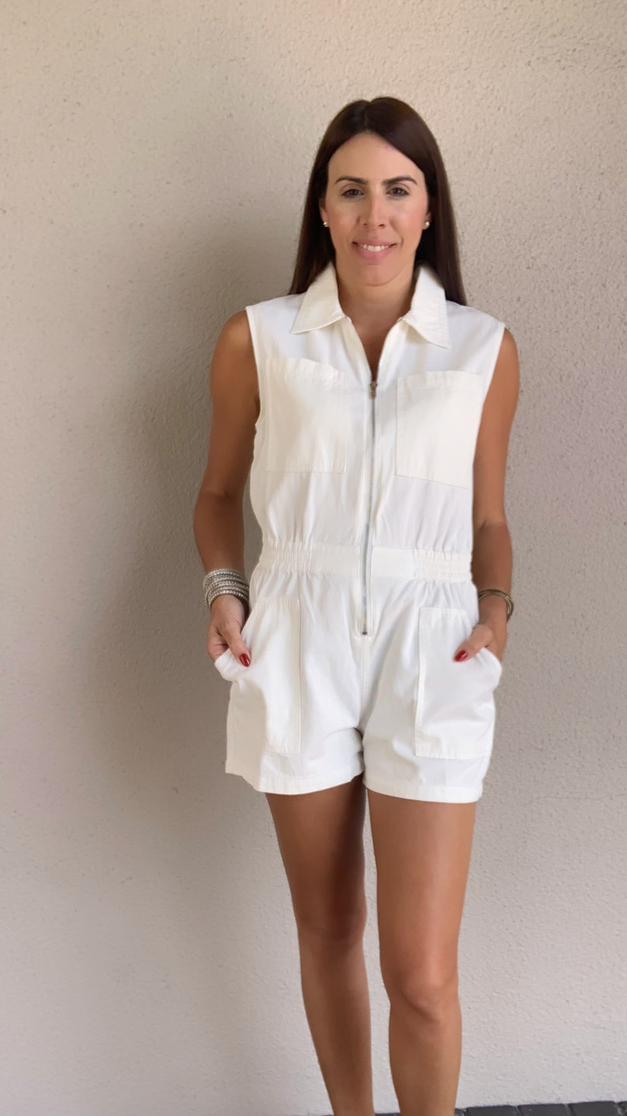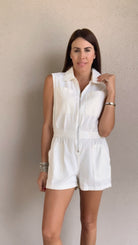 Step into effortless style with this Zip Front Sleeveless Collared Denim Romper. Designed for those who appreciate modern simplicity, this romper features a sleek zip-front closure and a sharp collared neckline, giving it a chic, tailored look. The lightweight denim fabric offers a relaxed fit that’s perfect for warm weather, while the sleeveless design ensures you stay cool and comfortable all day.
