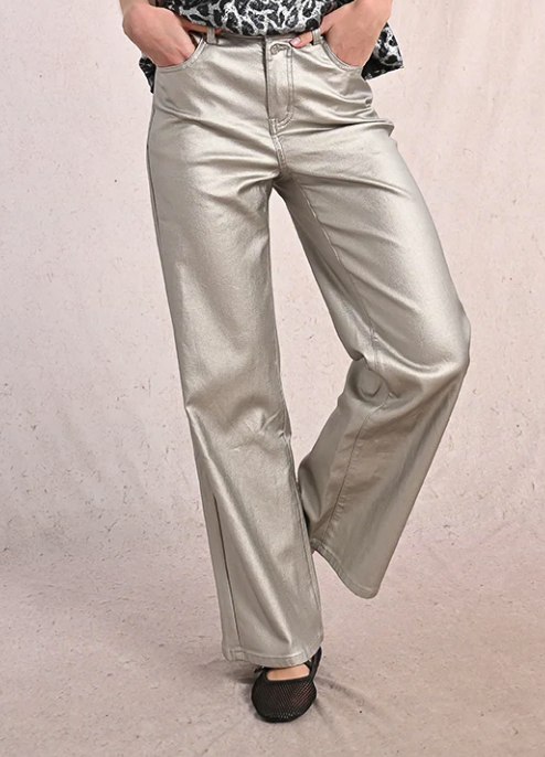 Elevate your style with these High Waisted Silver Coated Wide Leg Pants. Designed to flatter your figure with a comfortable high waist, their striking silver coating adds a modern, chic edge. The wide leg cut enhances movement and creates a bold silhouette, perfect for making a statement at any occasion. Pair them with your favorite top for a look that’s effortlessly sophisticated and fashion-forward.