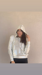 Knit Hooded Sweatshirt with Shimmer Coating