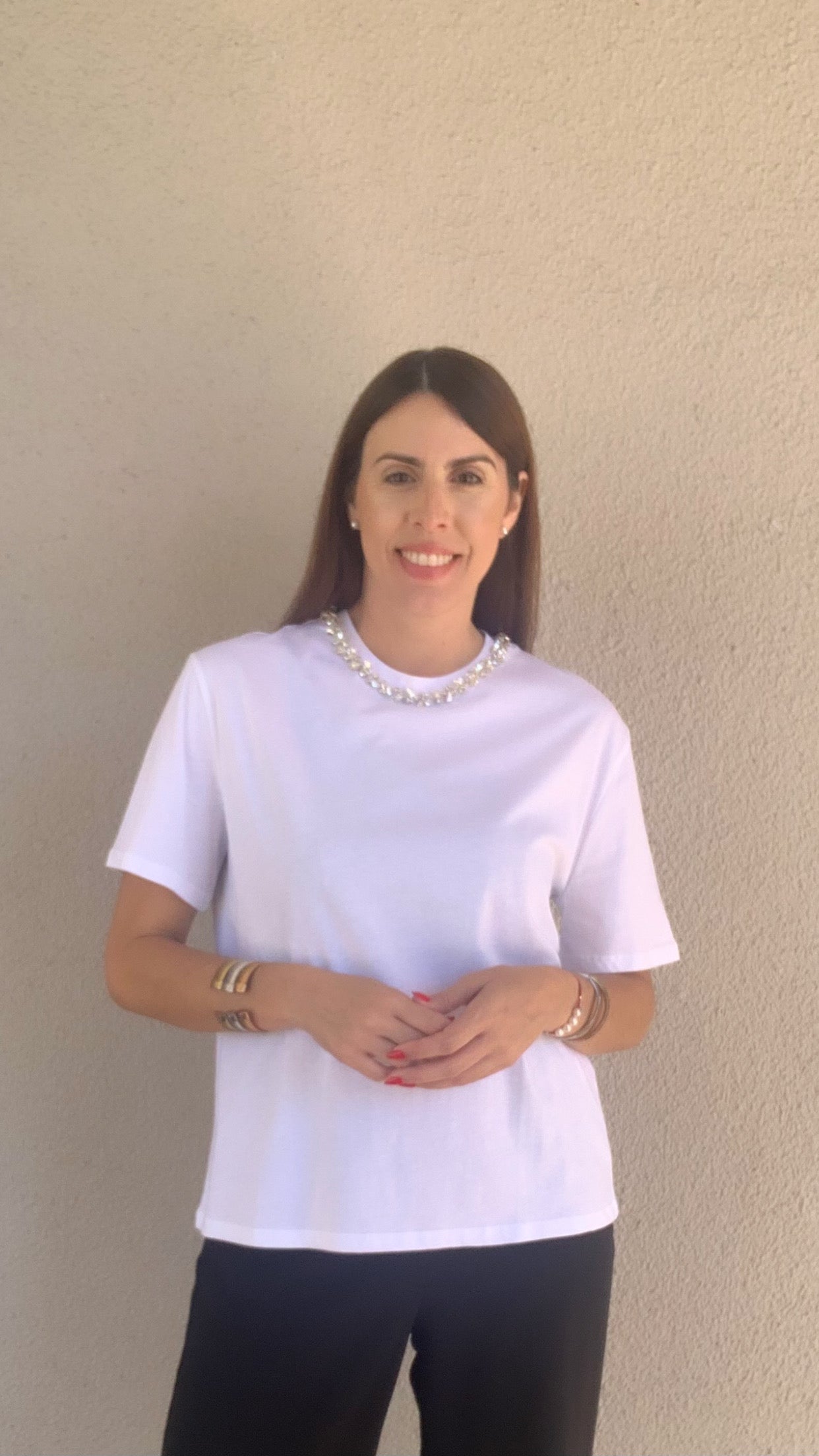 Knit Short Sleeve Tee with Rhinestone Neckline