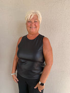 Elevate your wardrobe with the Liquid Leather High Scoop Modern Tank, designed for a sleek and sophisticated look. Its high scoop neckline and modern fit flatter your silhouette, while the liquid leather fabric adds a luxurious, edgy touch. Perfect for day-to-night wear, this tank pairs effortlessly with jeans or skirts, making it a versatile staple for confident style.
