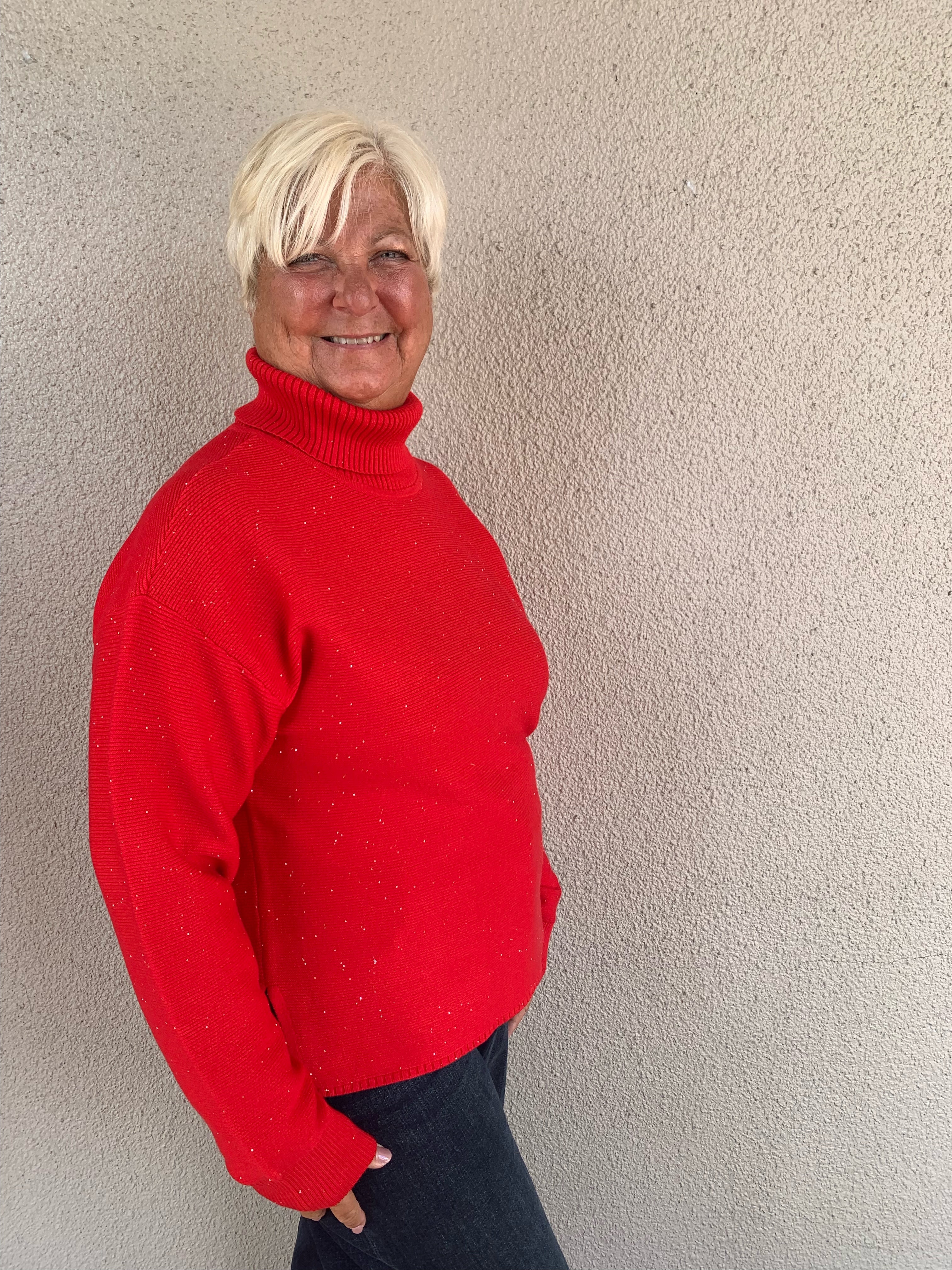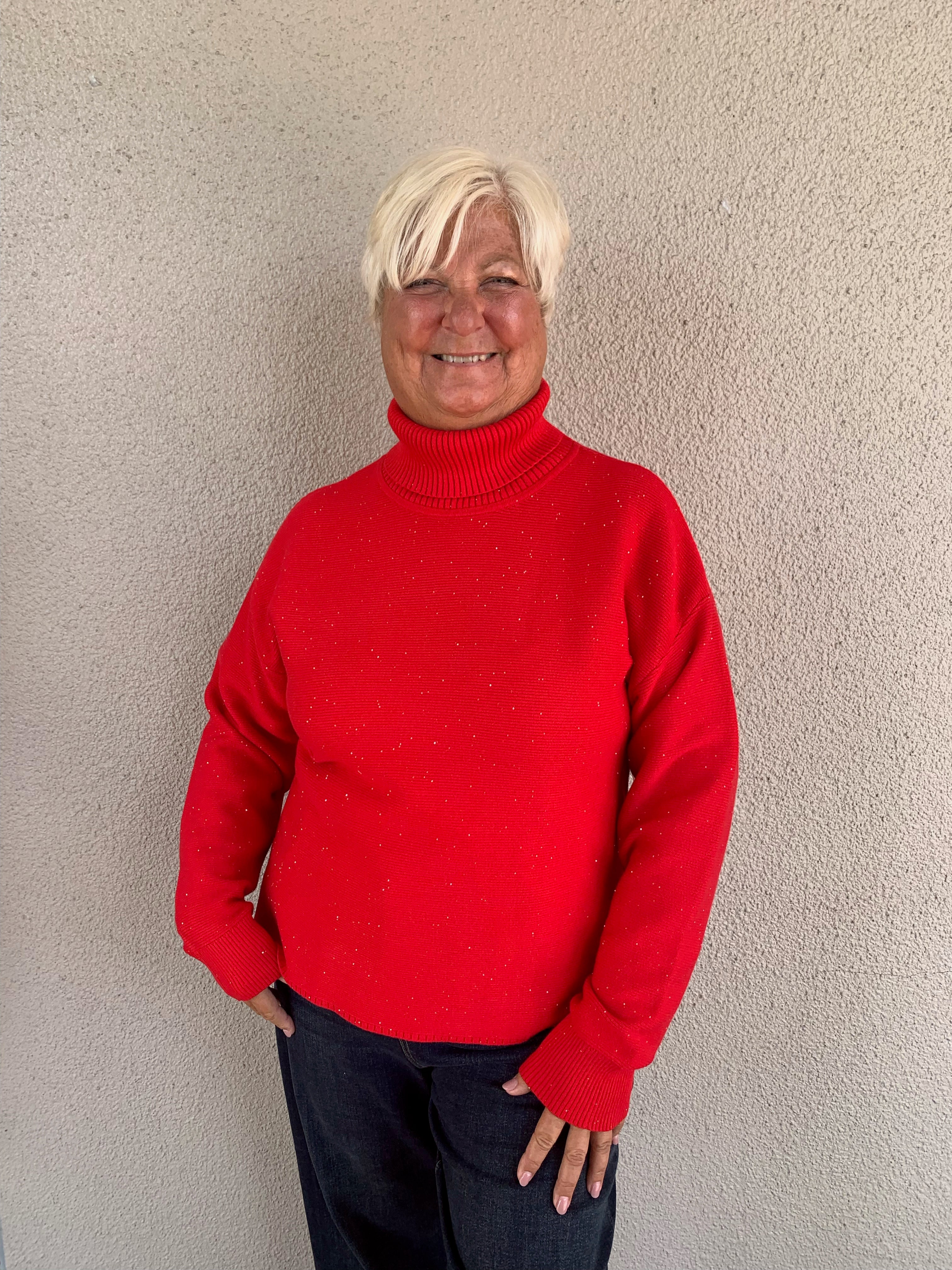 Turtleneck High-Low Knit Sweater with Sparkle Detail