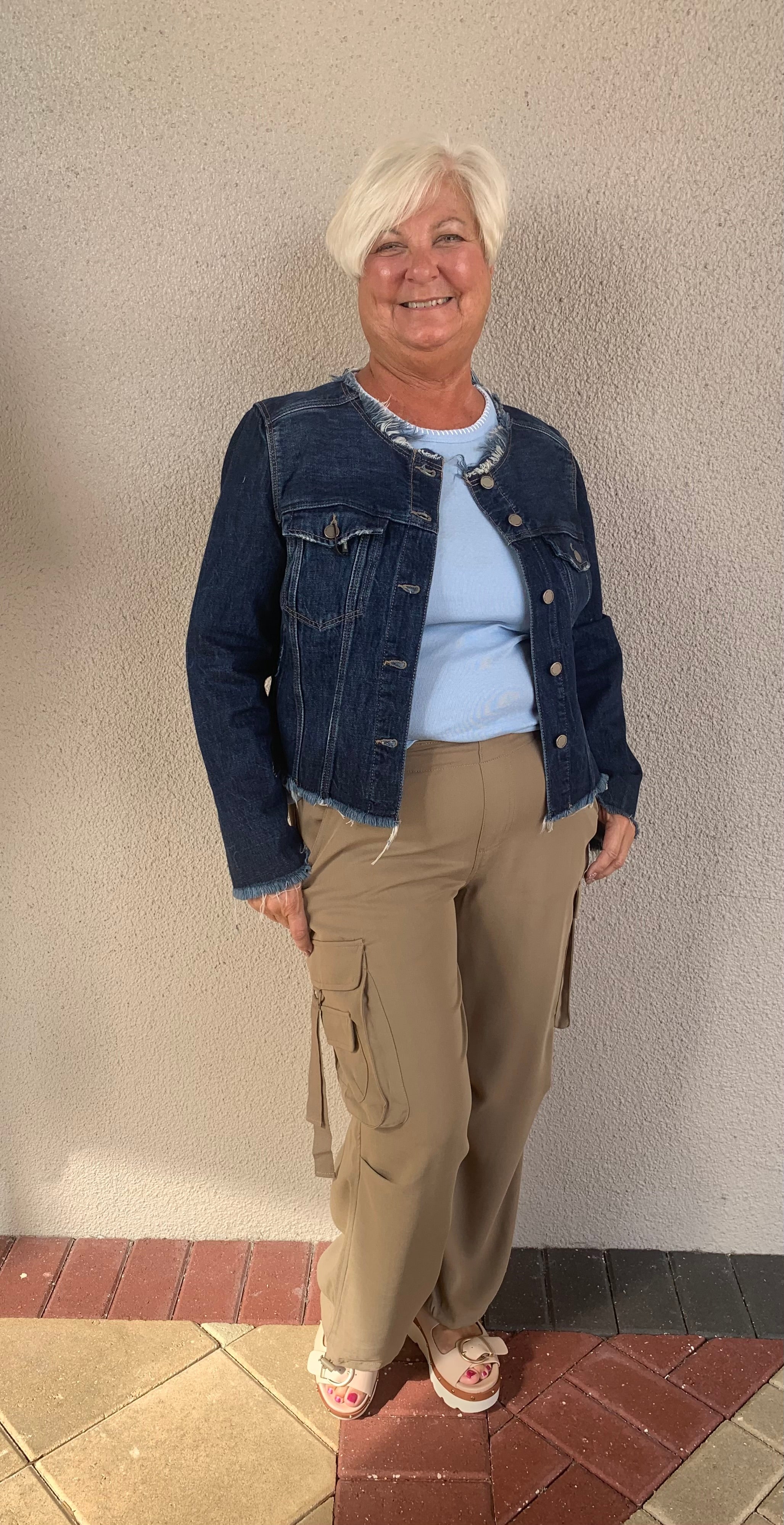• Fabric: Soft, durable denim with a frayed, raw hem for a unique finish