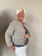 Experience comfort and function with this ultra-soft Woven Bomber Jacket, designed to feel as luxurious as cashmere. With long drop shoulder sleeves and a relaxed round neck, this bomber combines casual style with cozy warmth. The zip front and cropped cased hem add a modern edge, while dual-entry pockets keep your hands warm and essentials safe. Perfect for layering, this versatile jacket is your new go-to for effortless, elevated style.