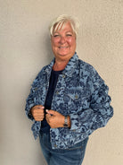 Elevate your wardrobe with this Cropped Button Front Jacquard Denim Jacket, crafted from a durable blend of 65% cotton and 35% polyester. Its unique jacquard texture adds a stylish twist to classic denim, while the cropped cut offers a modern, flattering silhouette. Perfect for layering, this jacket combines comfort and fashion effortlessly, making it an essential piece for any season.