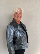 Elevate your style with the Sheen High Waist Zip Front Moto Jacket, designed to accentuate your silhouette with a flattering high waist cut. The front zip closure provides a sleek, modern touch, while the moto-inspired design adds an edgy vibe to any outfit. Perfect for layering, this jacket combines fashion and function for confident, versatile wear.