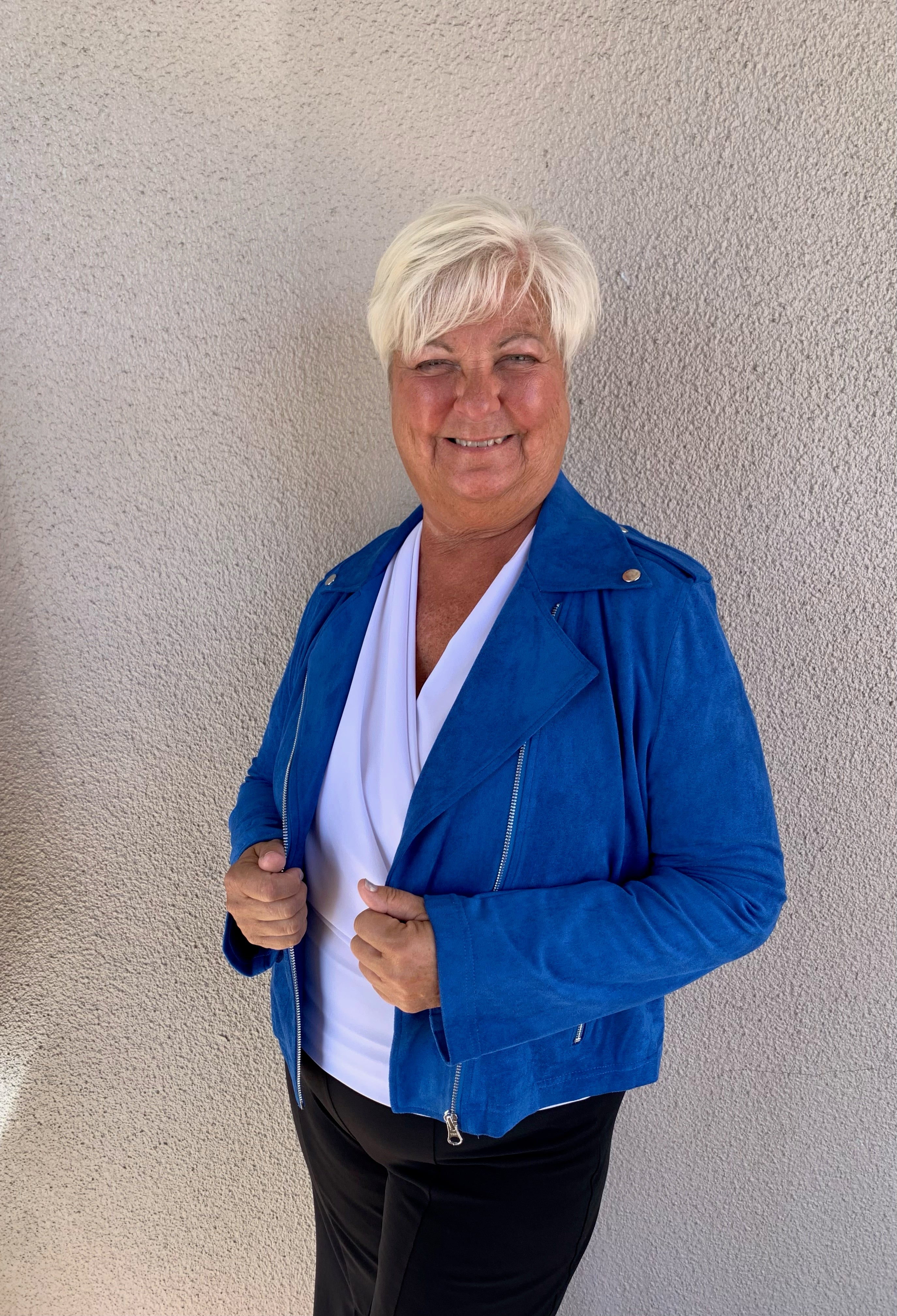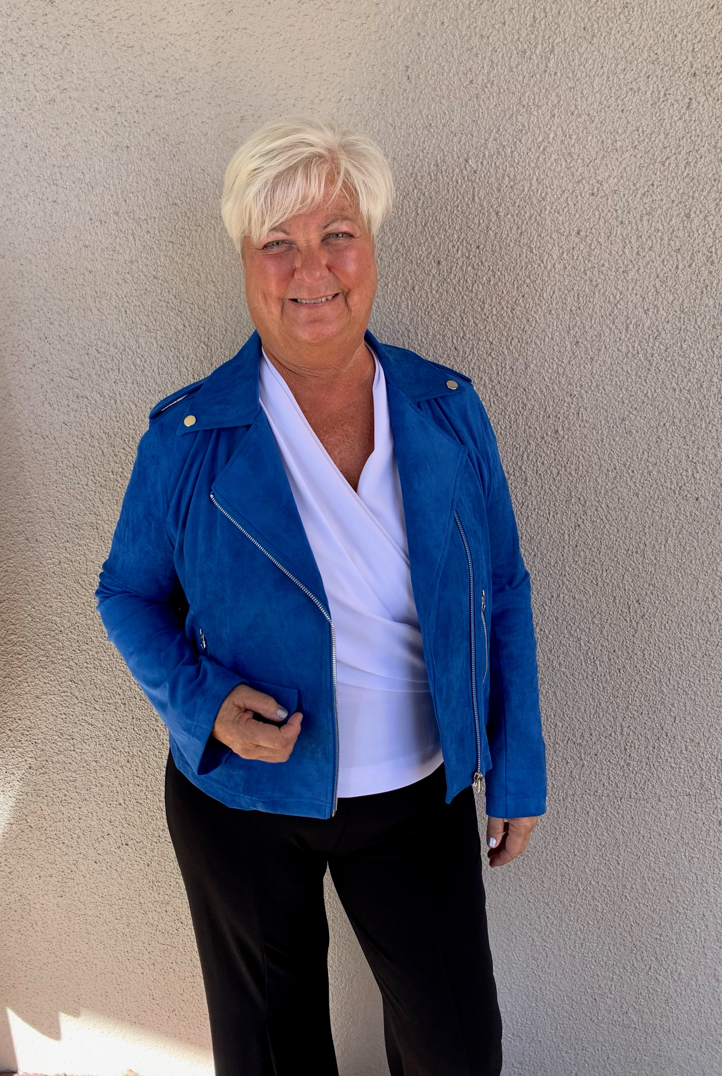 Elevate your everyday style with this luxurious suede zip front jacket, designed for effortless sophistication. The rich texture of premium suede pairs beautifully with thoughtful details—a sleek front zip closure, refined button accents, and functional pockets that blend form and function. Perfect for layering over dresses, tees, or sweaters, this versatile piece transitions seamlessly from casual outings to polished occasions. A timeless investment that adds instant polish to any wardrobe.