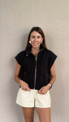 Elevate your wardrobe with this Zip Front Vest featuring striking exposed seam detailing. Designed for a sleek, modern look, it offers easy wear with a smooth front zipper. Perfect for layering, this vest adds a stylish edge while keeping you comfortable and effortlessly chic throughout your day.