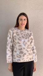 Animal Print Long Sleeve Crew Neck Sequin Sweater