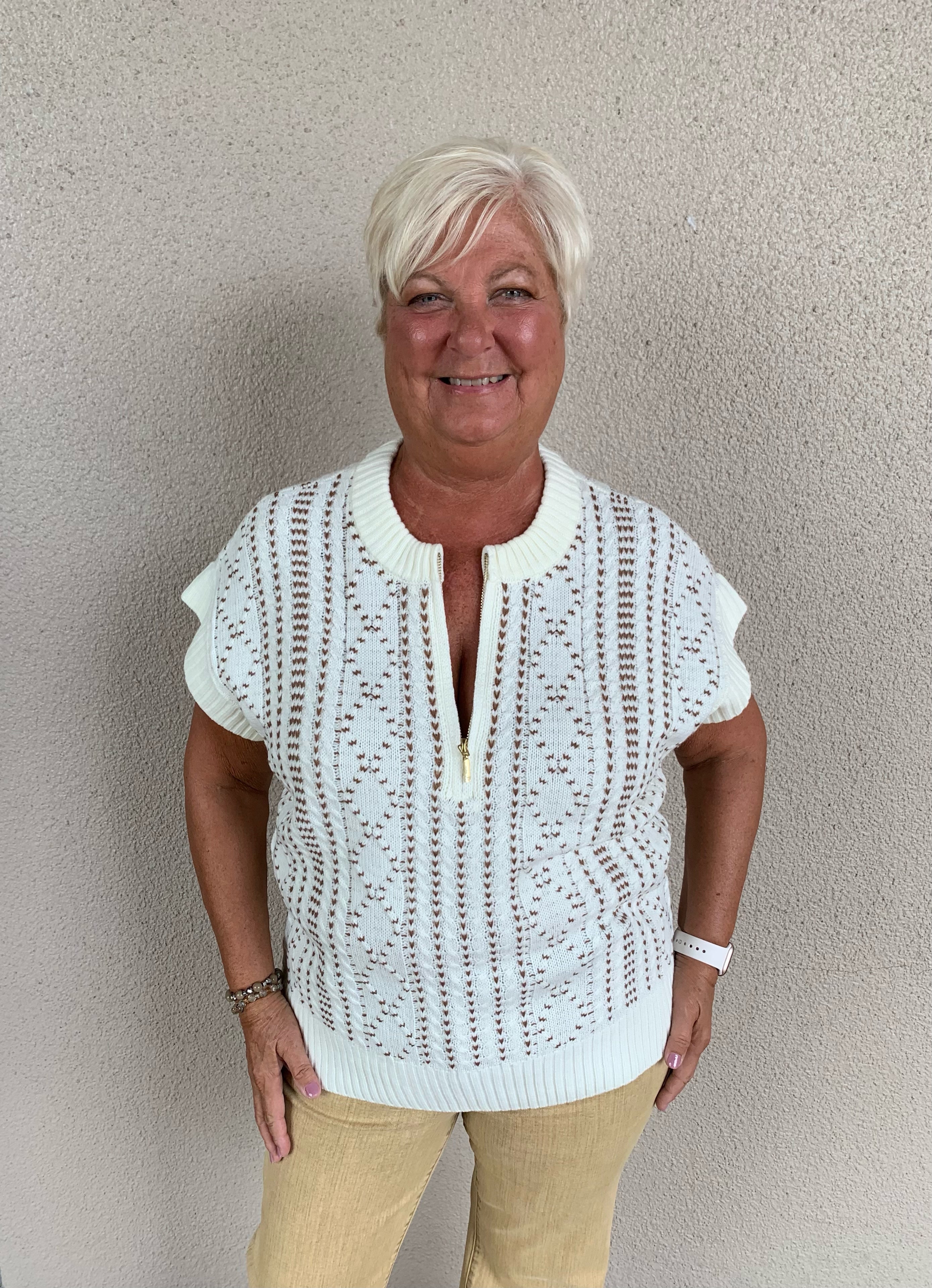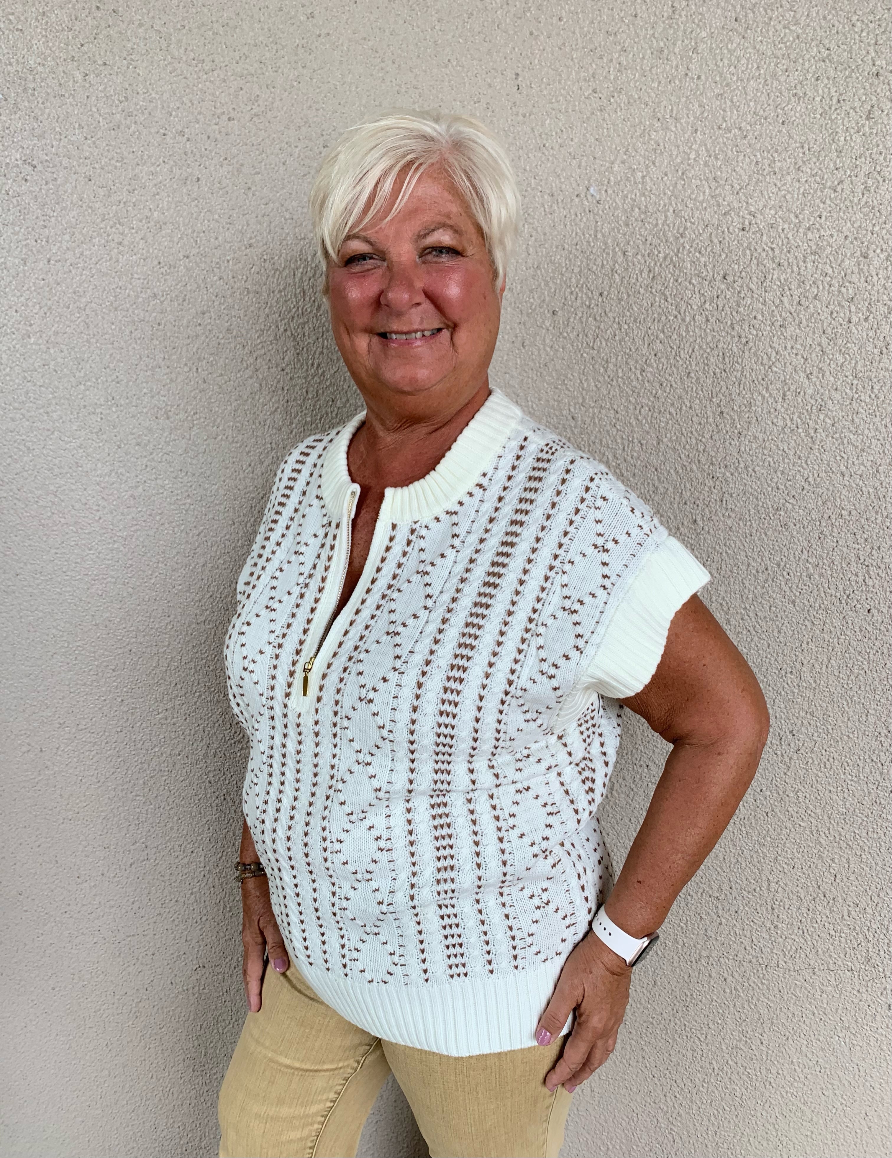 Cap Sleeve Sweater with 1/2 Zip Detail