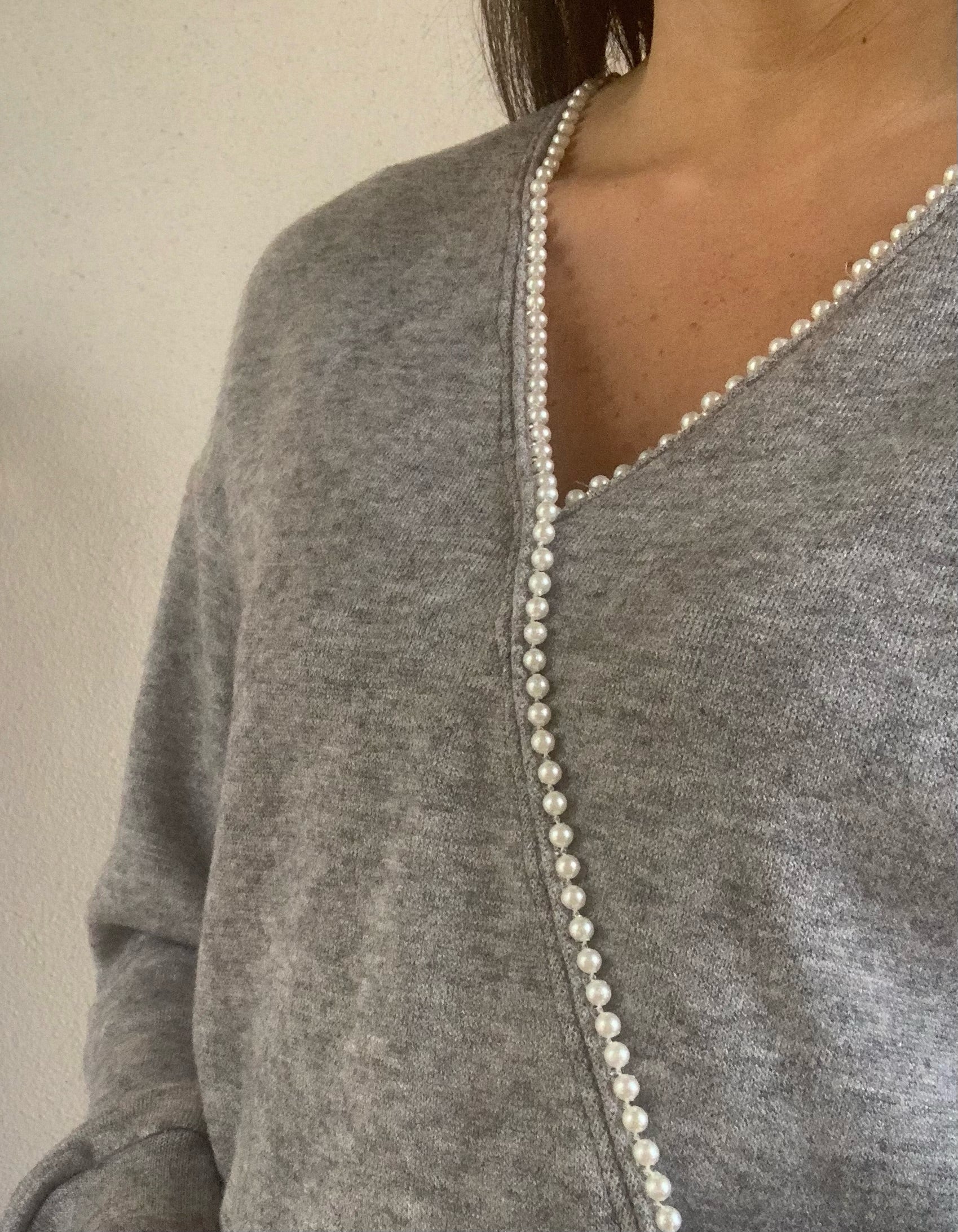 Cozy Faux Cross Front Sweater with Pearl Trim Detail