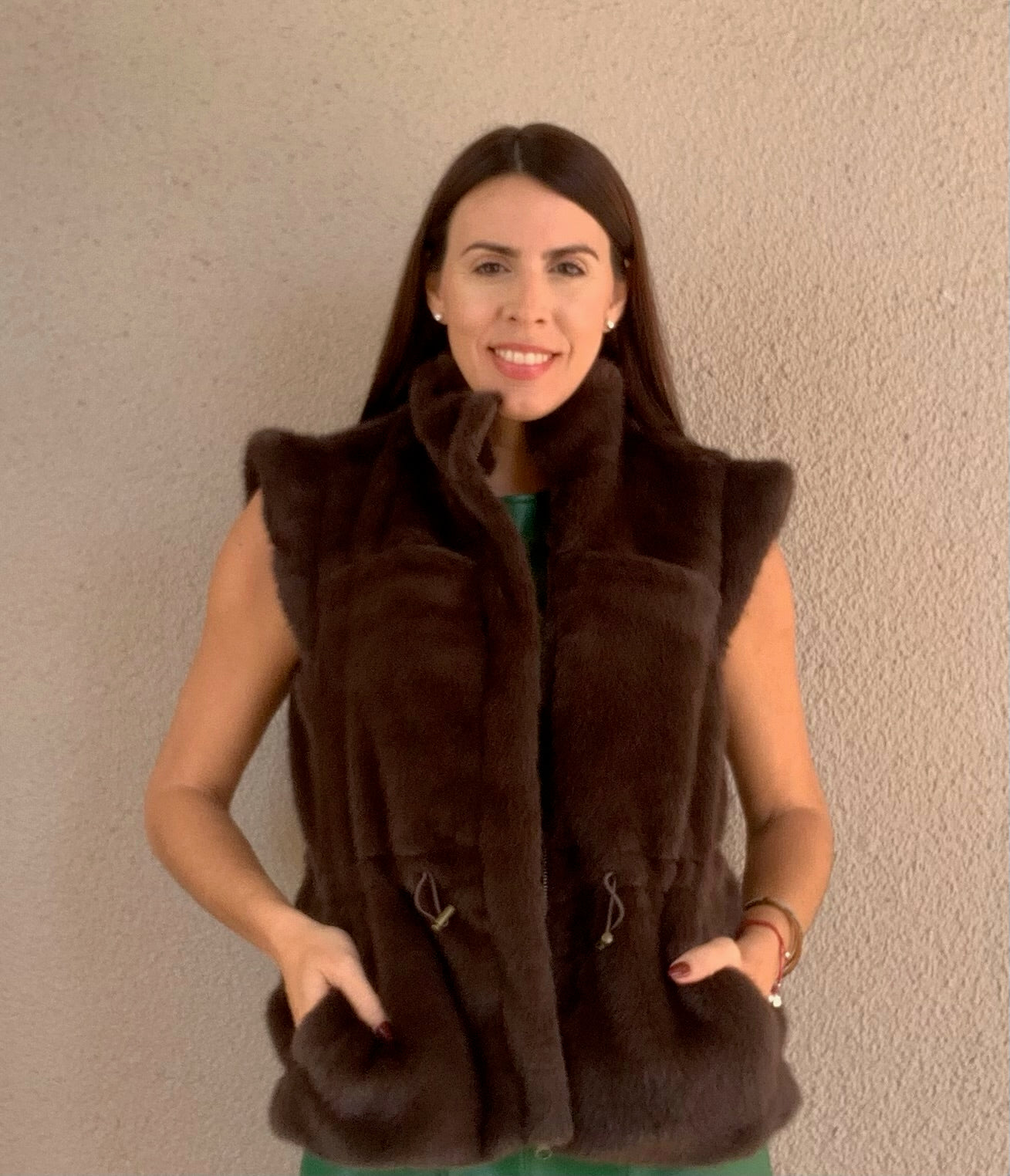 Faux Fur Zip Front Vest with Toggle Waist Tie Detail