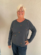 Elevate your wardrobe with this Long Sleeve Vintage Wash Top featuring delicate beaded details that add a touch of timeless charm. Crafted for comfort and style, its vintage wash offers a soft, worn-in feel perfect for all-day wear. The subtle beading elevates any outfit effortlessly, making it a versatile piece for both casual and dressier occasions. Embrace a look that’s uniquely yours with this beautifully designed top.