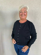 Effortlessly layer with this charming snap button front knit cardigan that combines comfort with timeless style. The soft knit fabric drapes beautifully while the convenient snap closures make it easy to slip on and off throughout your day. Perfect for transitional seasons, this versatile piece pairs seamlessly with everything from casual tees to dresses, giving you endless styling options. Whether you're heading to the office or out for a relaxed weekend, this cardigan delivers both warmth and sophistication in one wardrobe essential.