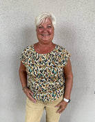 Elevate your wardrobe with this Printed Pleated Shoulder Cap Sleeve Knit Top. Its delicate pleated detailing on the shoulders adds a refined touch, while the soft knit fabric ensures all-day comfort. The cap sleeves offer a flattering silhouette, making it perfect for both casual outings and dressier occasions. Versatile and stylish, this top effortlessly combines comfort and elegance for a standout look.