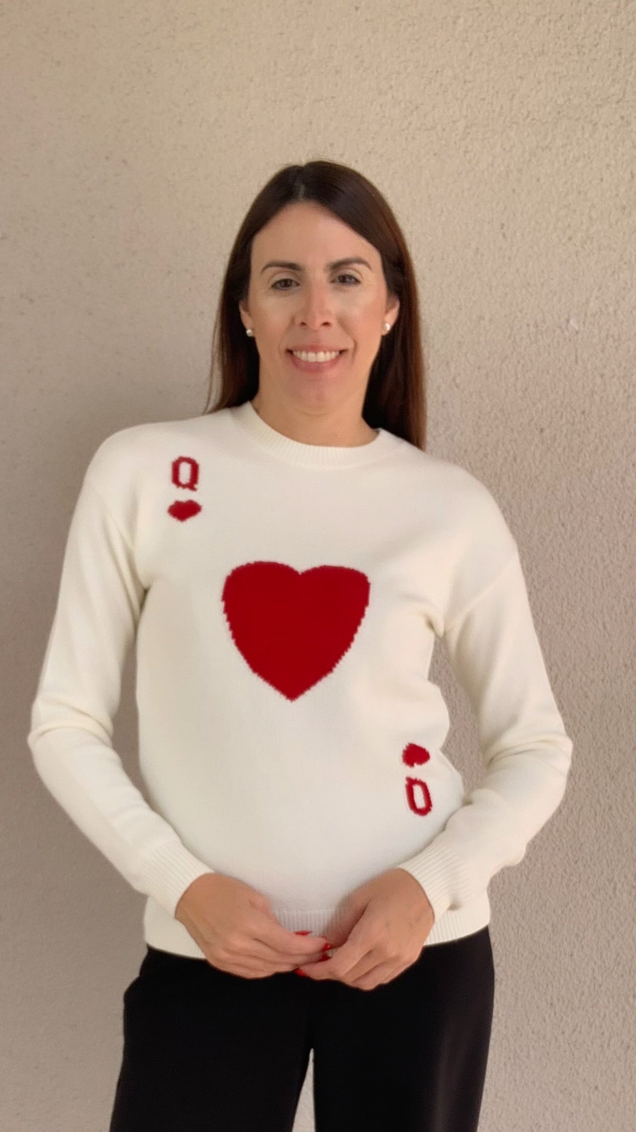 Elevate your style with the Queen Playing Card Pull-Over Sweater, a perfect blend of bold design and cozy comfort. Crafted for a flattering fit, this sweater features a striking queen playing card motif that adds a unique edge to your wardrobe. Its soft fabric keeps you warm while making a confident fashion statement wherever you go. Stand out effortlessly in this versatile piece that pairs perfectly with casual or chic looks.