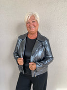 Elevate your style with the Sheen High Waist Zip Front Moto Jacket, designed to accentuate your silhouette with a flattering high waist cut. The front zip closure provides a sleek, modern touch, while the moto-inspired design adds an edgy vibe to any outfit. Perfect for layering, this jacket combines fashion and function for confident, versatile wear.