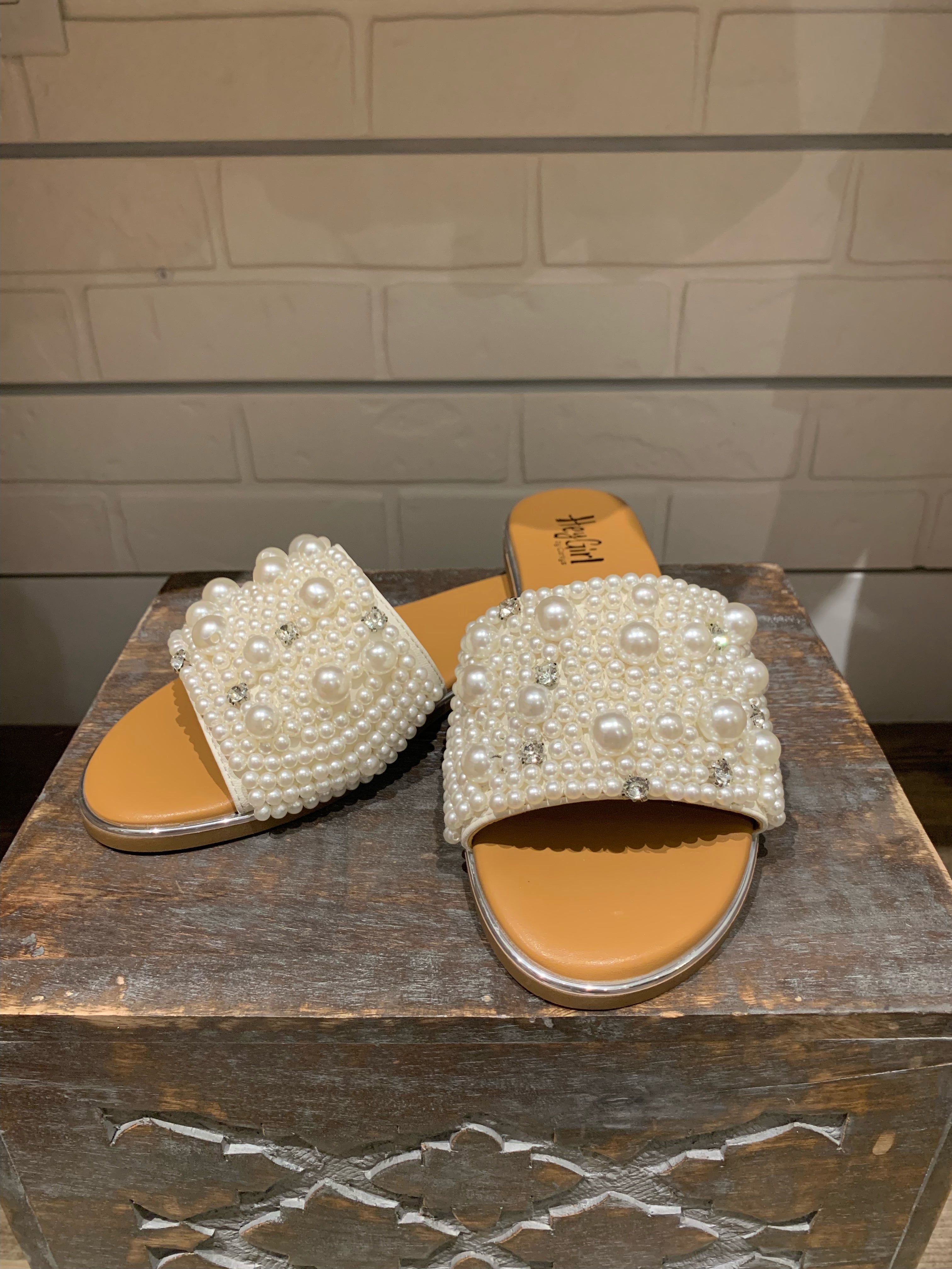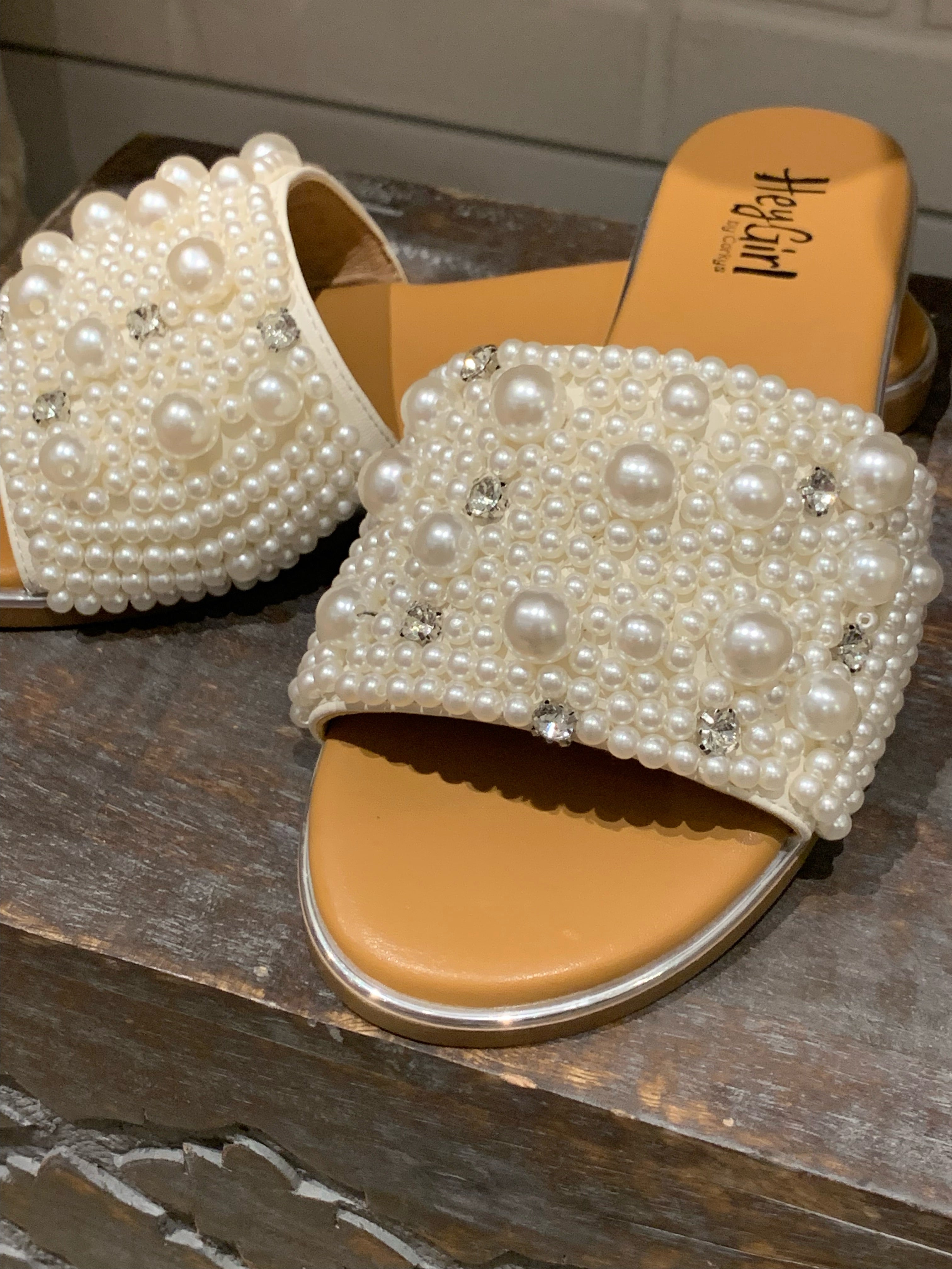 Gimme Kiss Slide Sandal with Pearl & Rhinestone