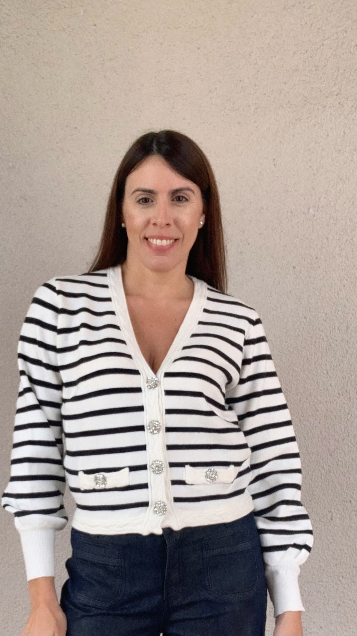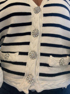 Elevate your wardrobe with this Button Front Stripe Cardigan featuring meticulously detailed buttons. Its classic striped design adds a timeless touch, while the decorative buttons bring subtle sophistication. Soft and comfortable, this cardigan layers effortlessly for day-to-night style, making it an essential piece for versatile, polished looks.