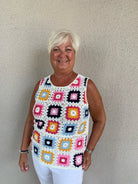 A playful nod to vintage charm, the Sleeveless Patchwork Square Crochet Top blends boho spirit with modern flair. Featuring a handcrafted-inspired patchwork of colorful crochet squares, this sleeveless top makes a bold statement with its texture and artistry. The open-knit design offers breathable comfort, while the square pattern adds a nostalgic, yet trend-forward edge.