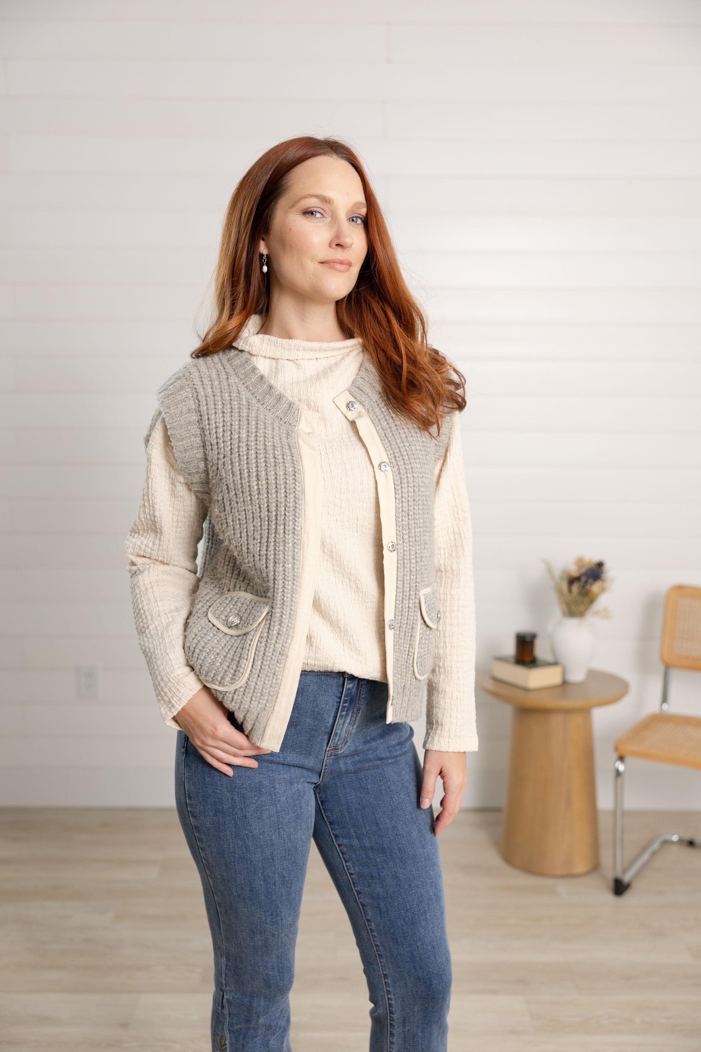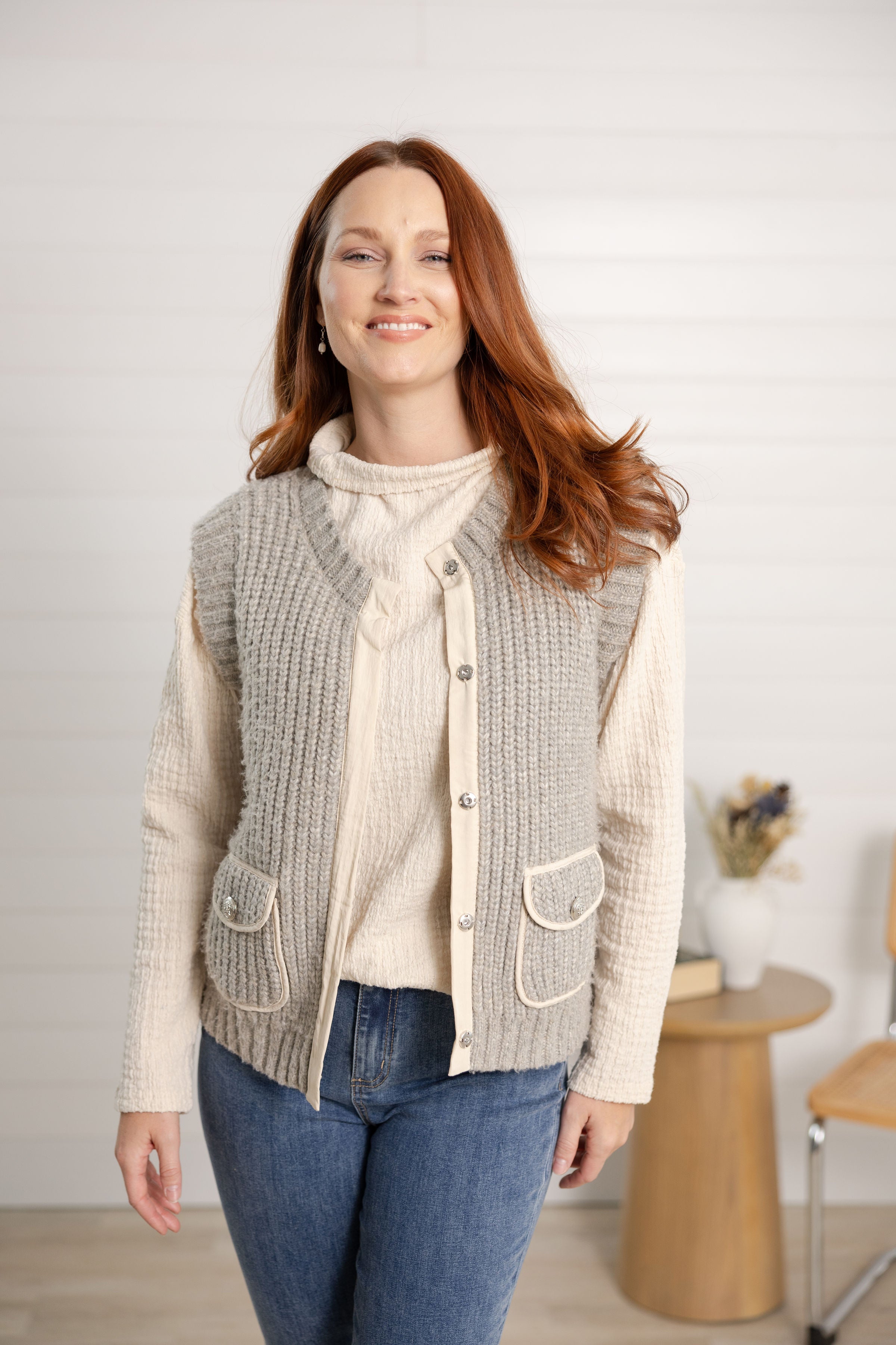 Elevate your wardrobe with this Knit Sleeveless Vest featuring convenient pockets. Crafted for both comfort and style, it layers effortlessly over your favorite tops, adding warmth without bulk. The pockets offer practical storage, making it perfect for on-the-go days. Embrace versatile fashion that keeps you cozy and chic wherever you wear it.