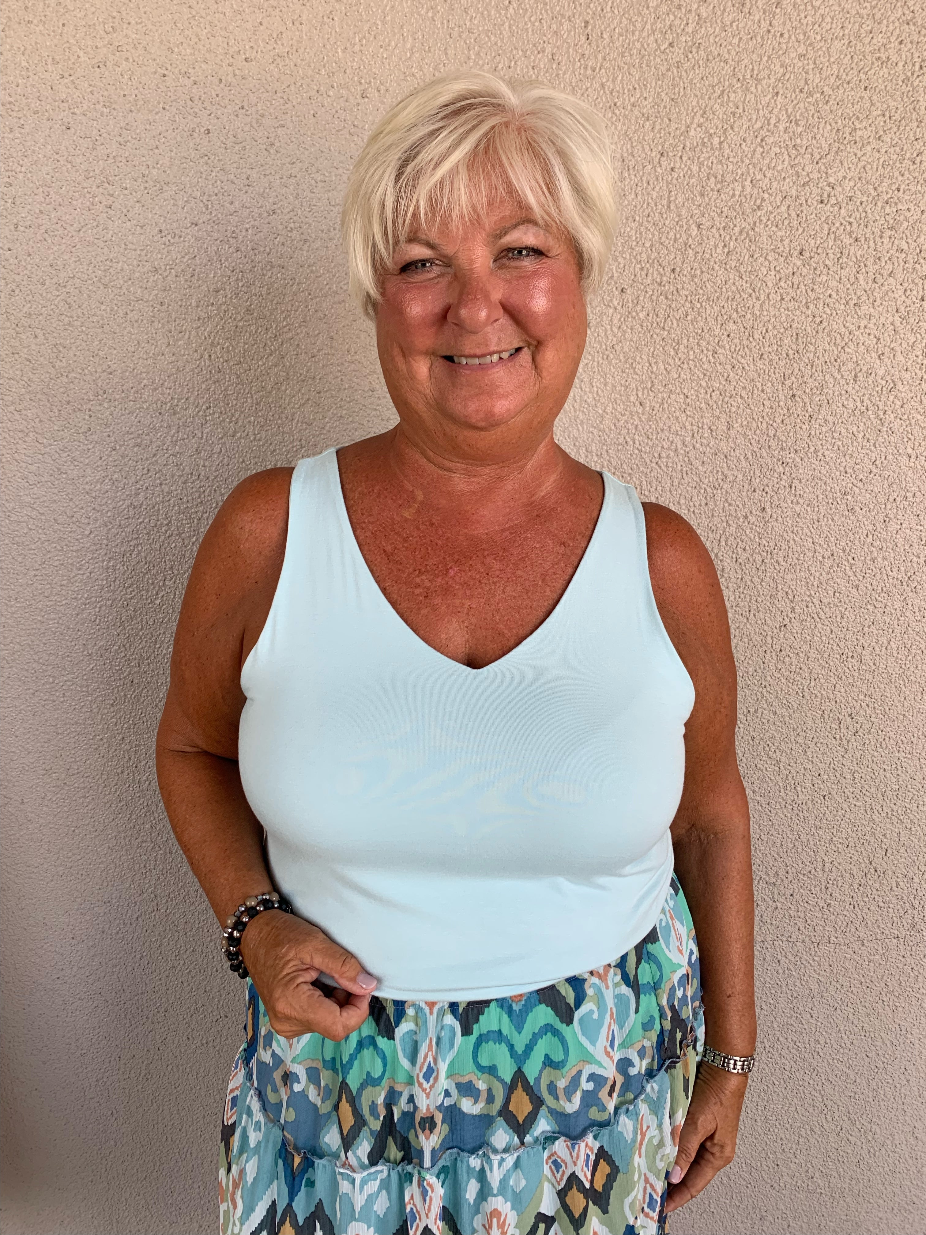 Effortlessly refined, the Amaya Tank is your go-to for elevated everyday style. Crafted from a soft and stretchy rayon-spandex blend, this double-layered V-neck tank offers a smooth, flattering fit with just the right amount of coverage. The clean neckline and minimalist design make it easy to wear alone or layered under your favorite jacket or cardigan. Whether dressed up or down, Amaya delivers comfort and confidence with every wear.