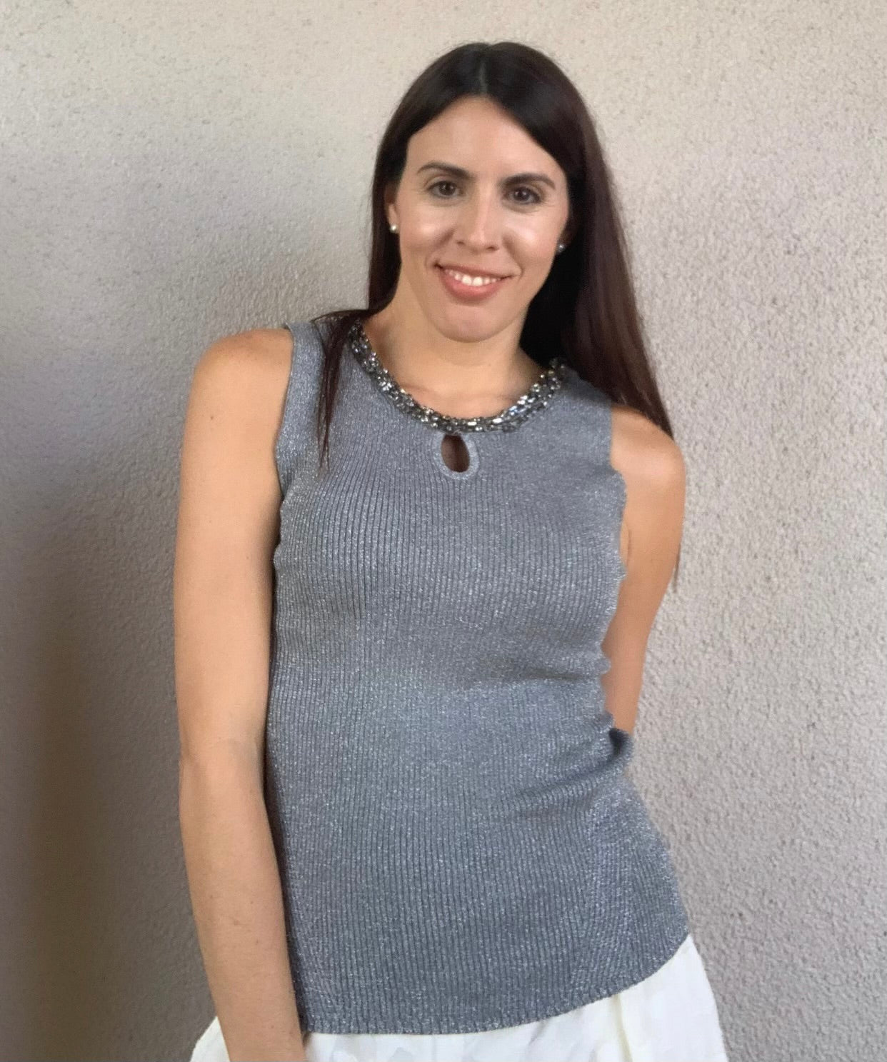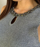 This eye-catching Metallic Sweater Tank Top is the ultimate versatile piece, perfect for layering under a jacket or standing out on its own. The sleeveless design and ribbed texture create a flattering silhouette, while the round beaded neckline and keyhole detail add a hint of elegance and charm. Whether styled casually or dressed up for an evening look, this tank top brings a touch of shimmer and sophistication to any outfit.