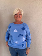 Sail into timeless style with this Nautical Print Boat Neck Sweater. Crafted from a soft cotton-rich blend, this sweater features a flattering boat neckline and long sleeves, giving it a classic yet effortless appeal. The chic nautical print adds a coastal-inspired charm, making it perfect for breezy days or relaxed outings. Pair it with white jeans or tailored shorts for a fresh, maritime-inspired look that’s both comfortable and stylish.