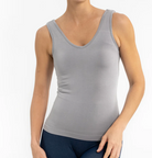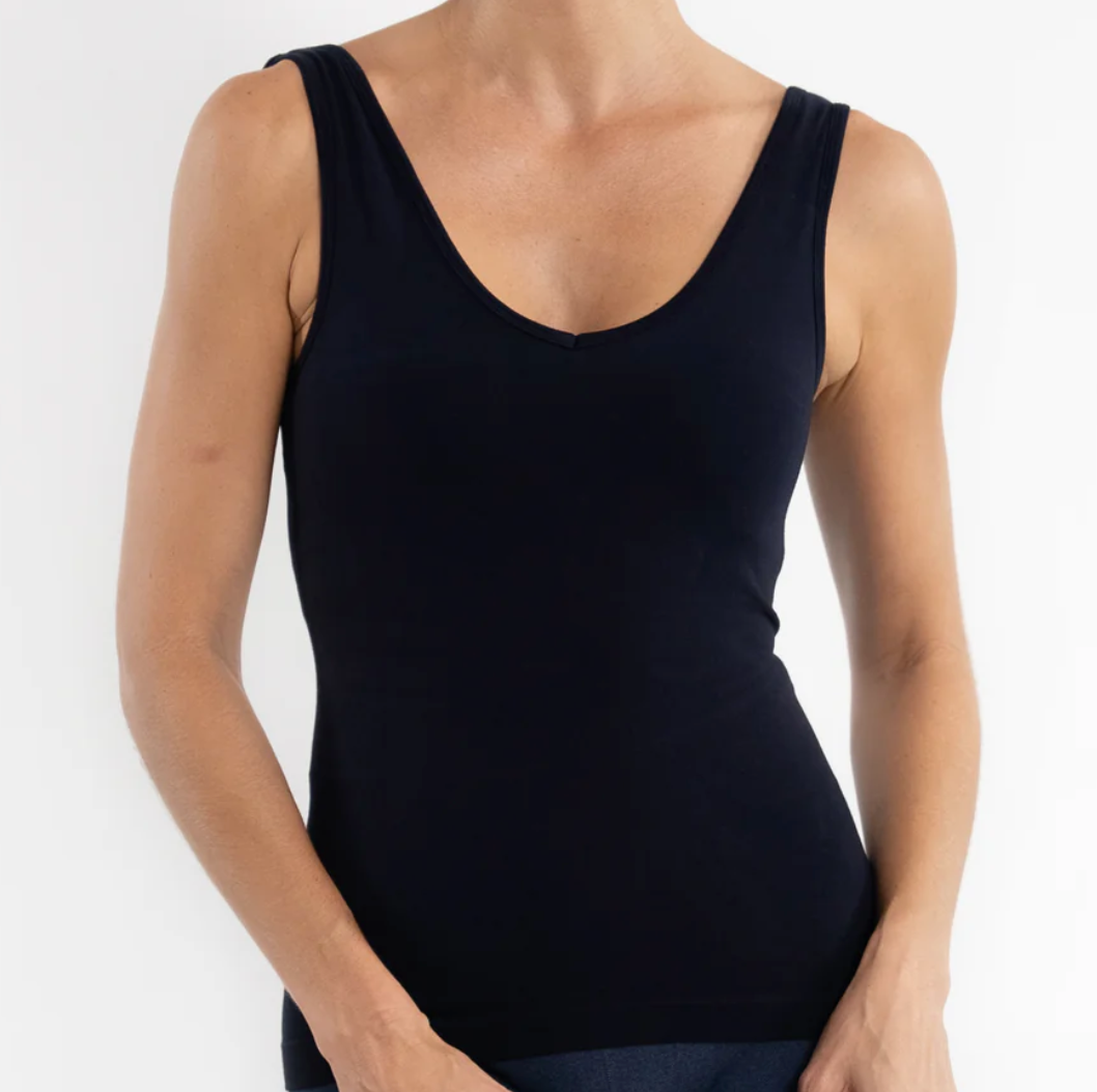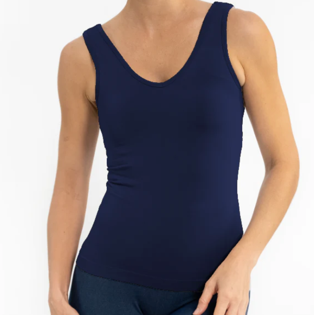 V-Neck/ Scoop with Built In Bra! This supportive, everyday top is designed to make you look and feel amazing all day. With its built in bra, reversible design for different necklines, and removable padding, you can be sure that you're getting comfort and coverage.