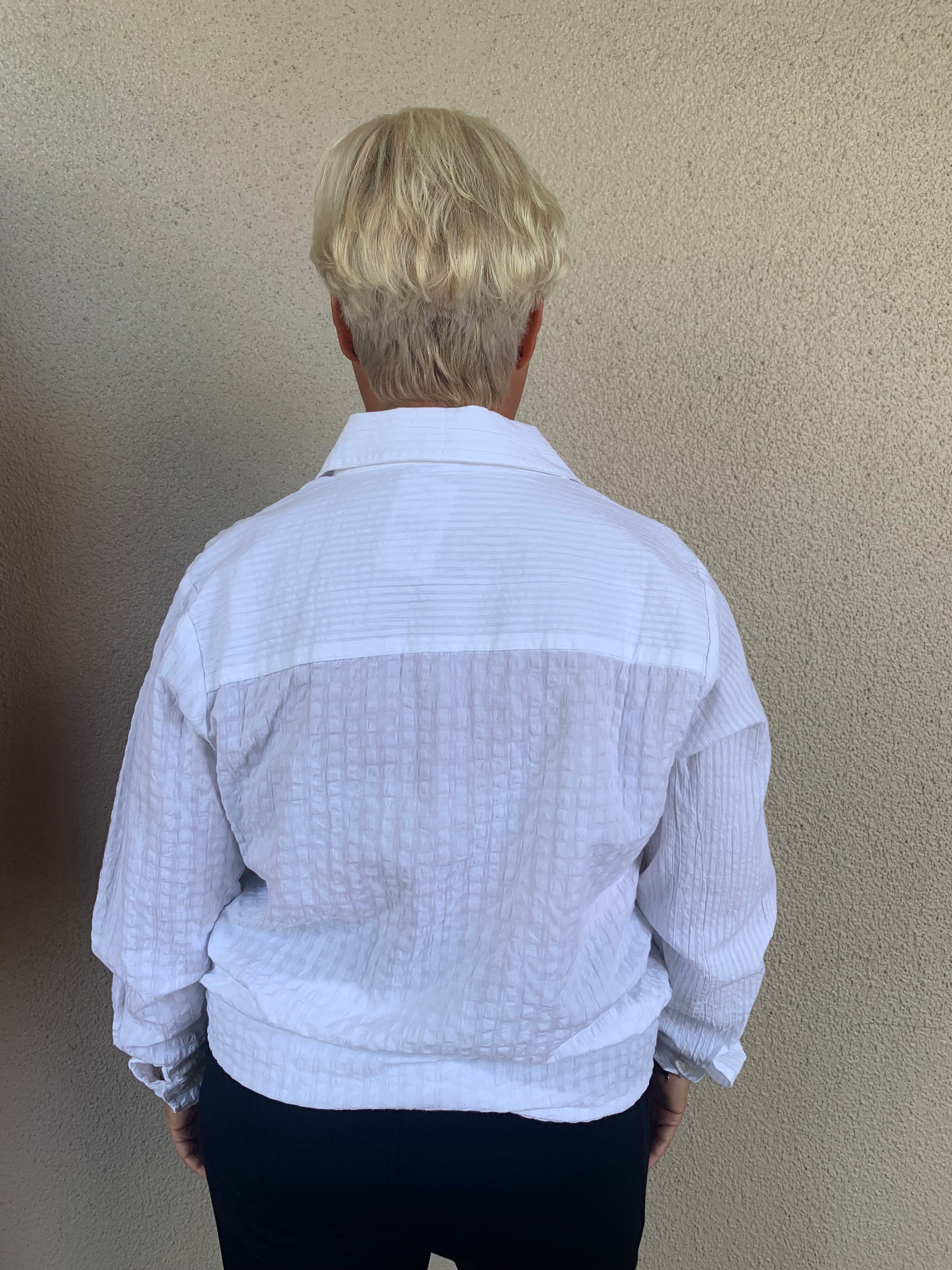• Fabric: Lightweight seersucker for a relaxed feel