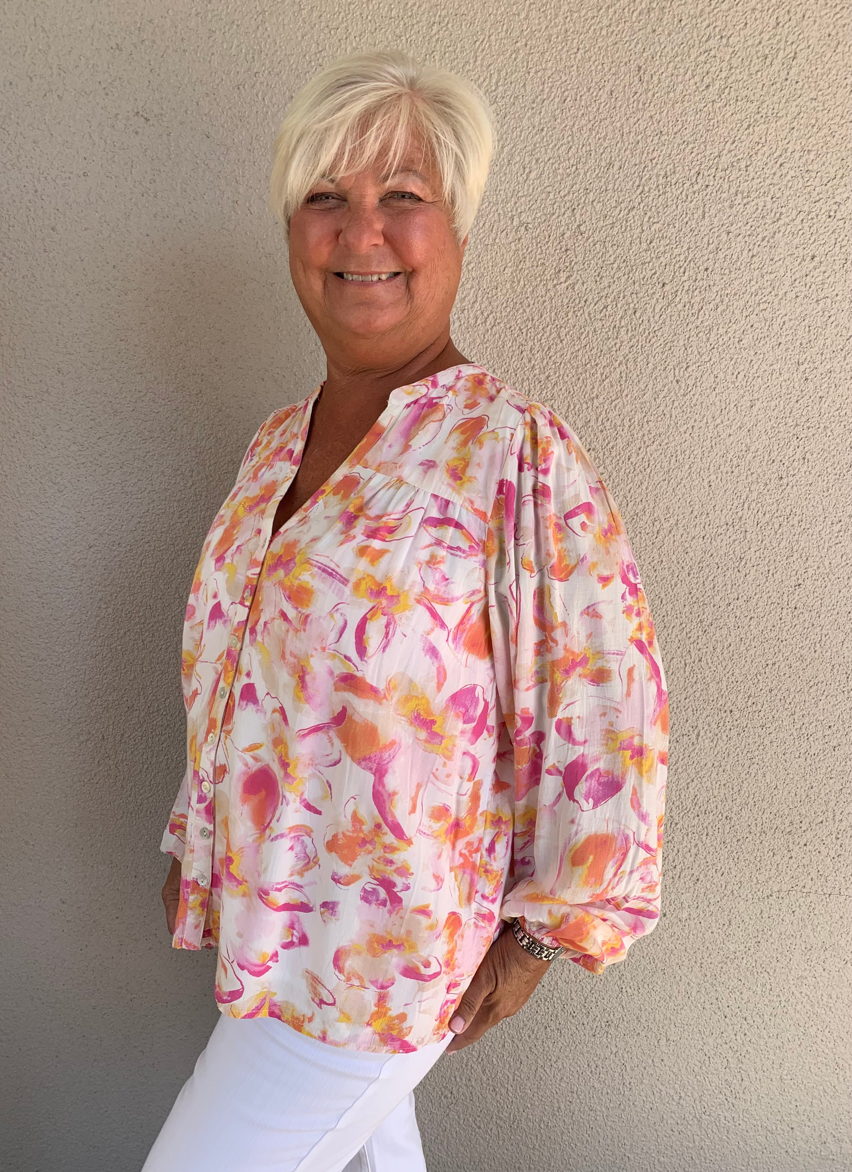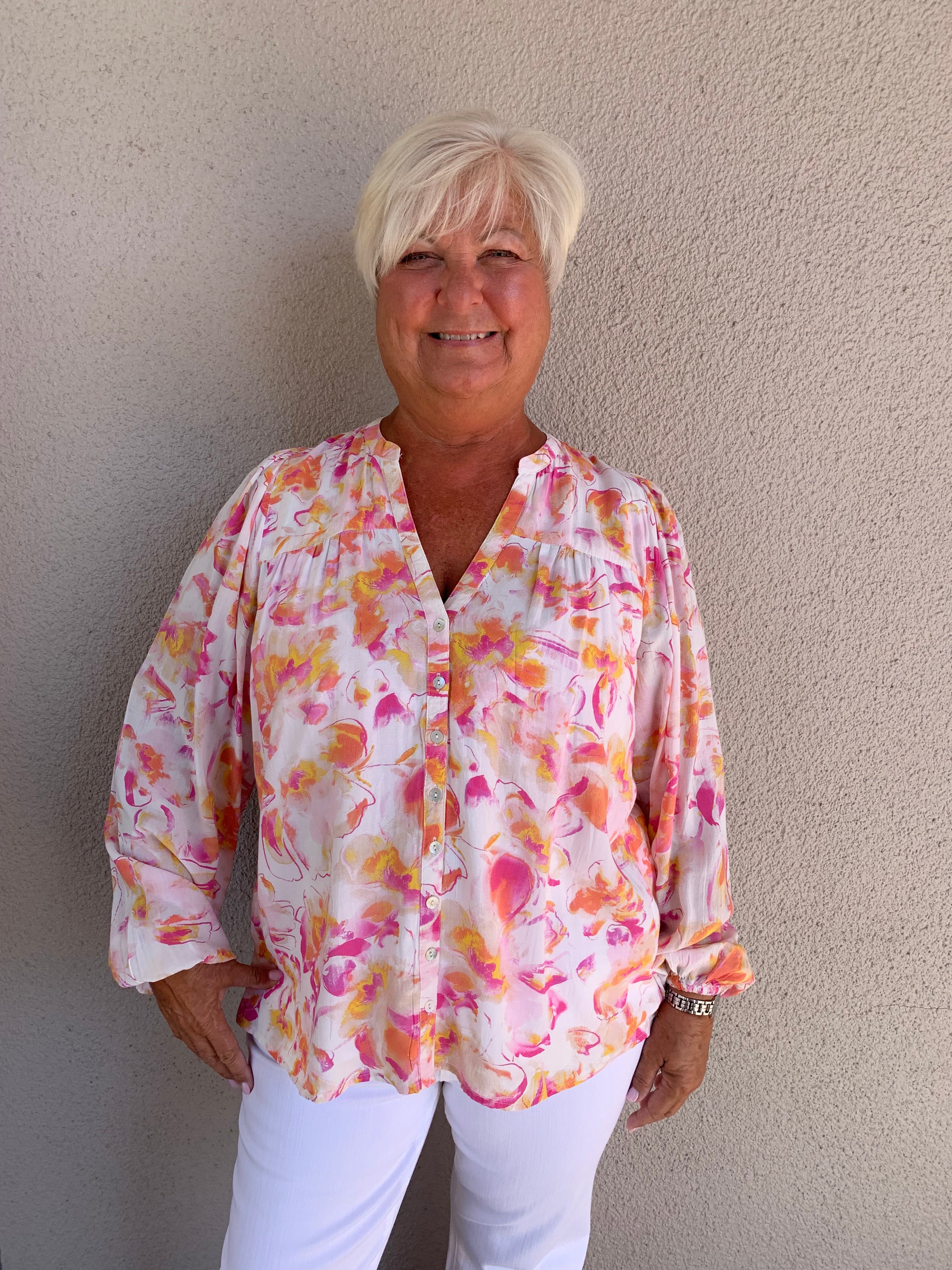 Floral Print V-Neck Button Front Blouse