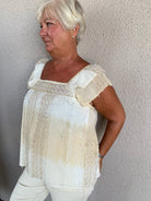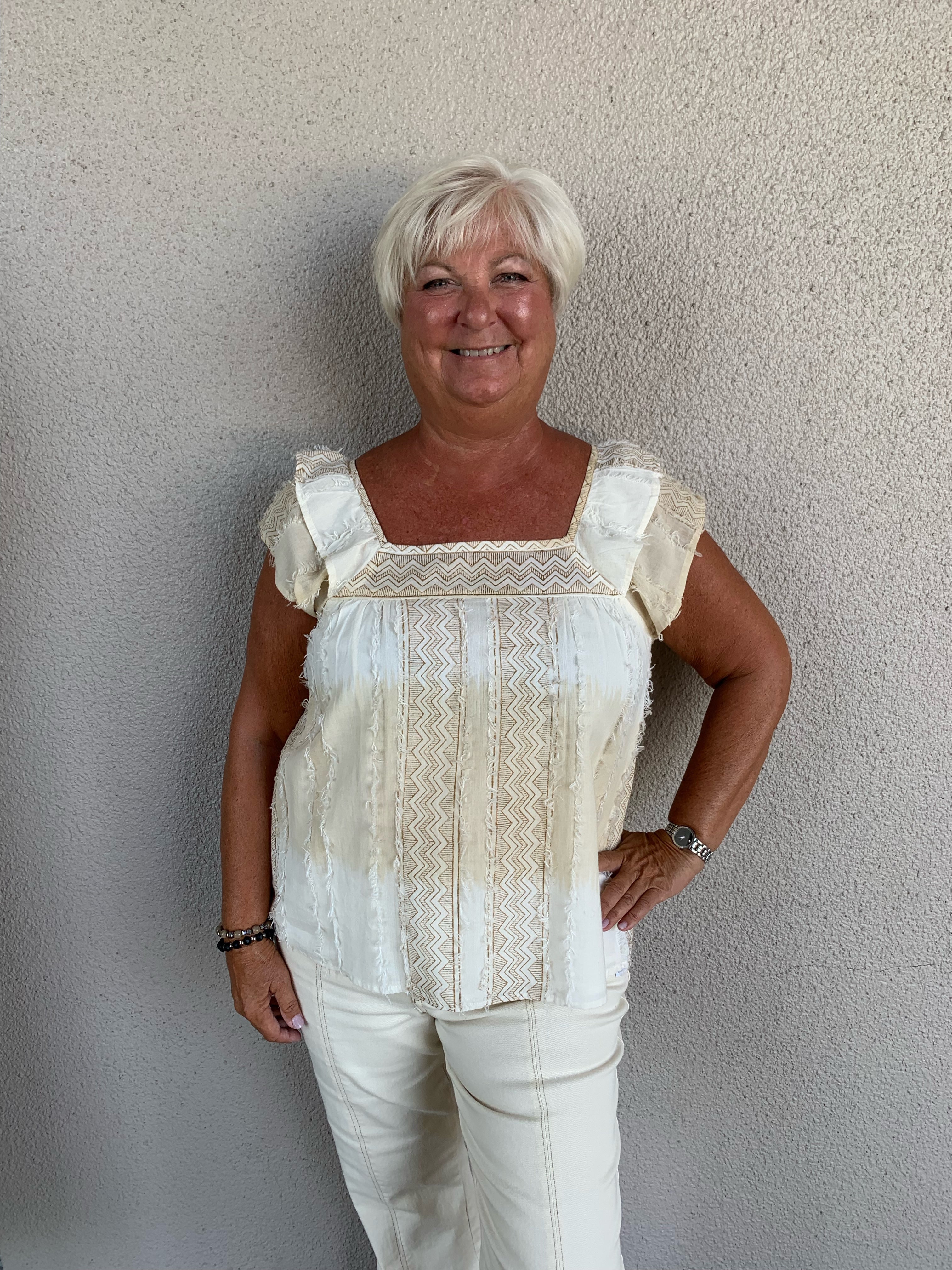 Flutter Short Sleeve Square Neck Top with Embroidery Detail