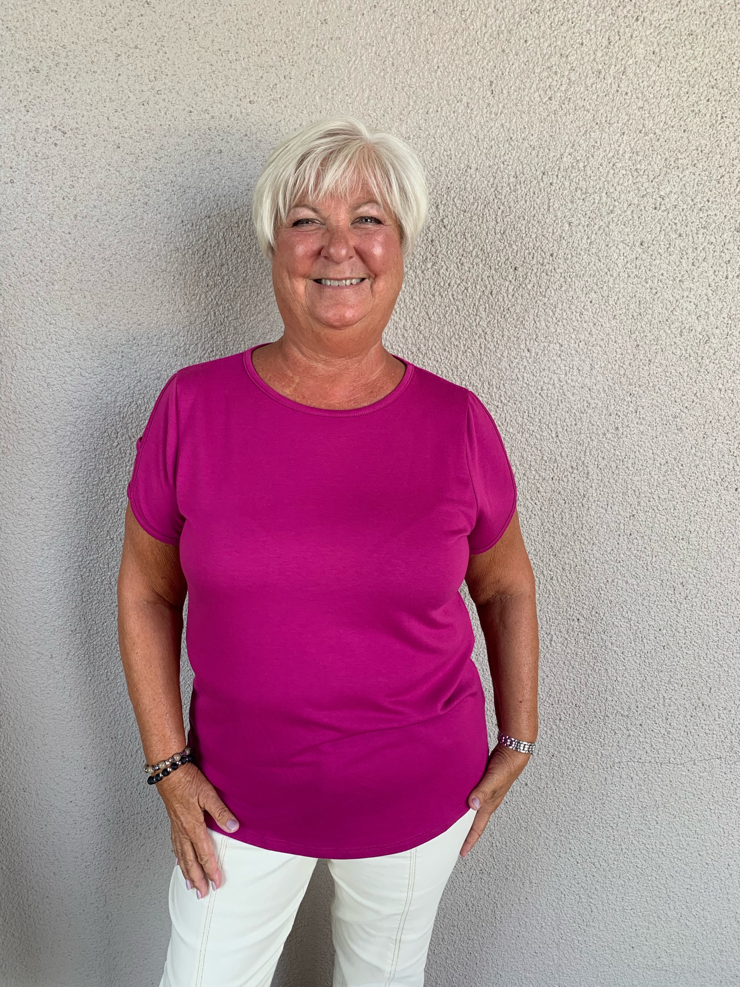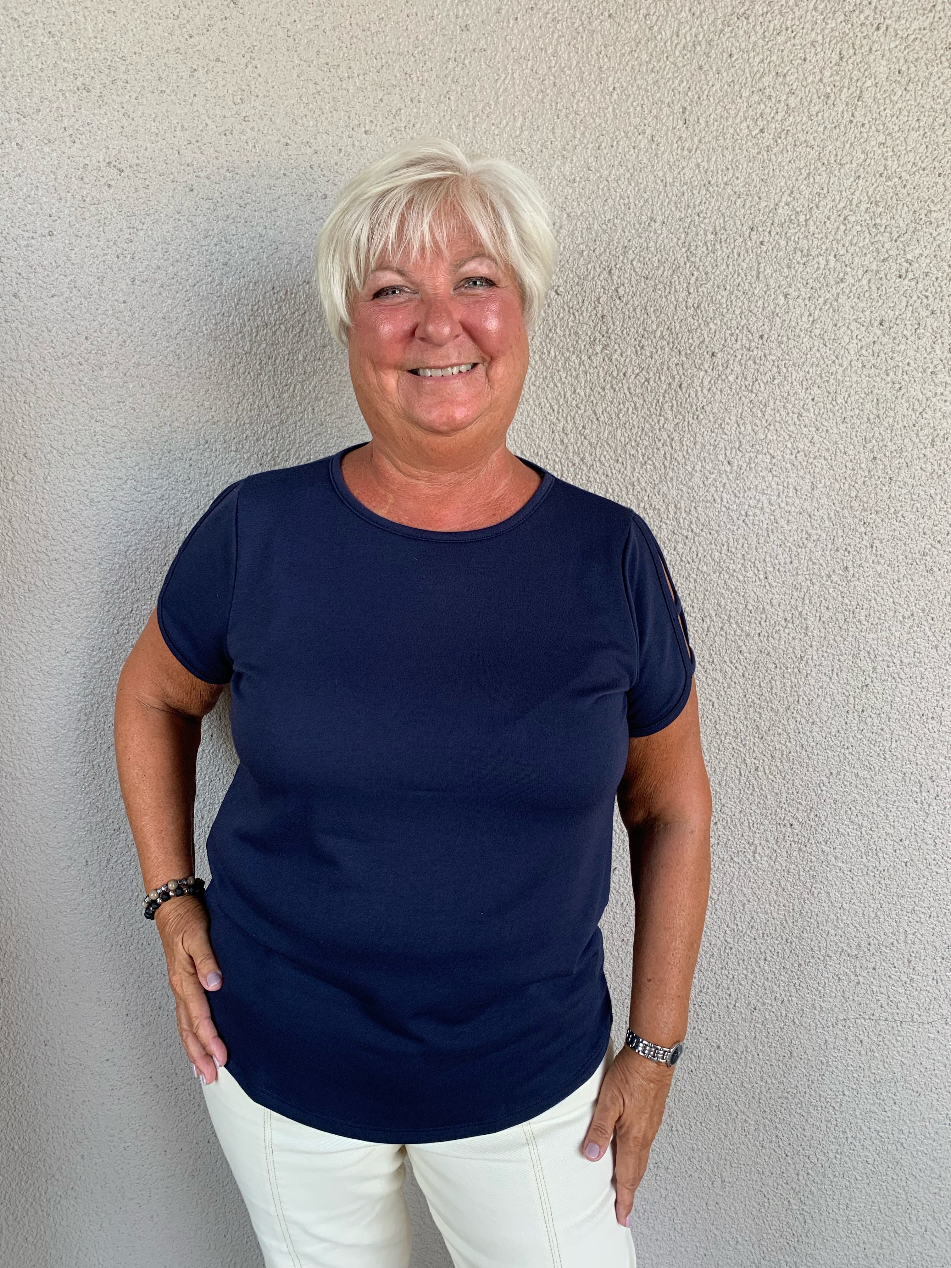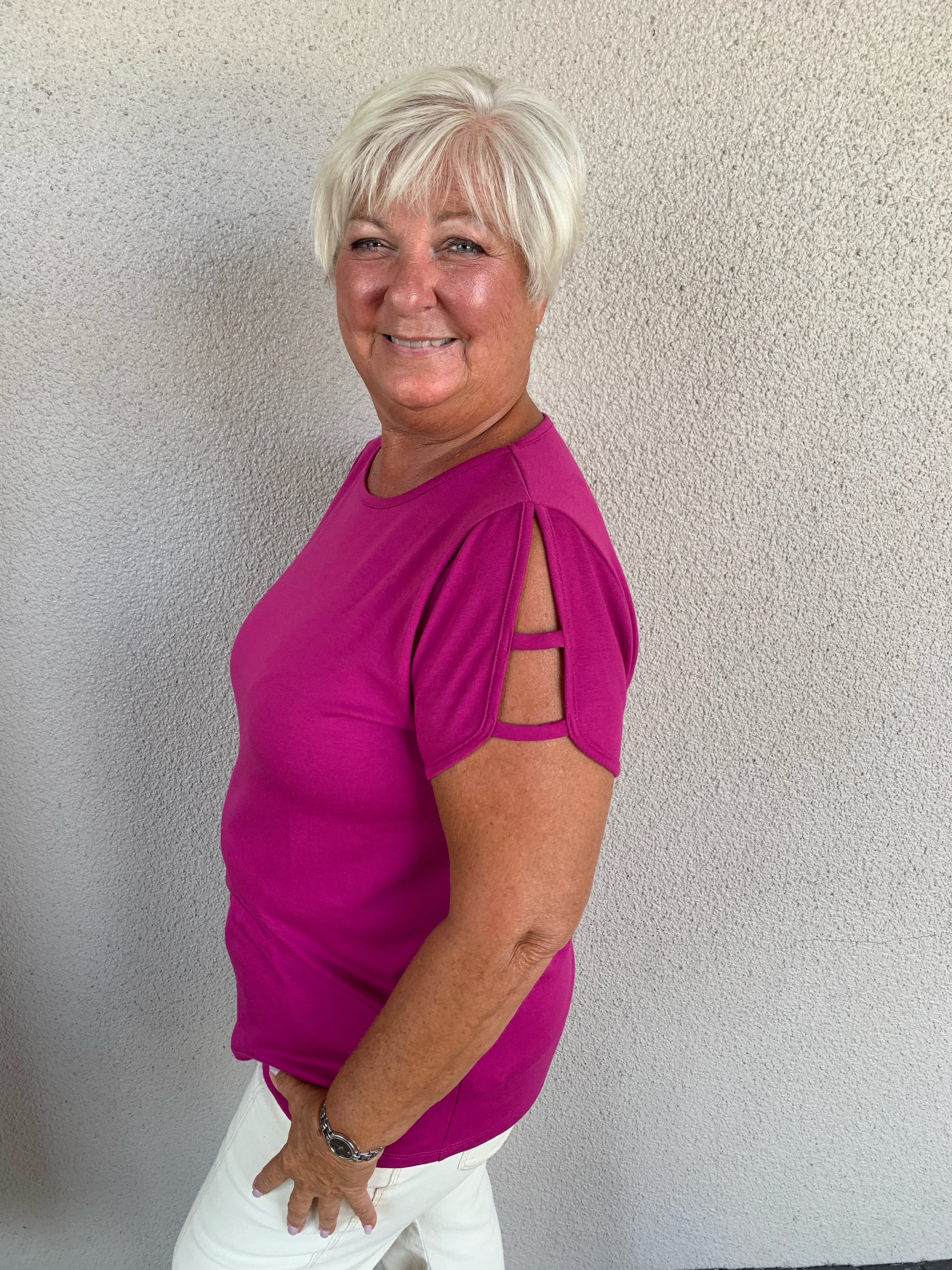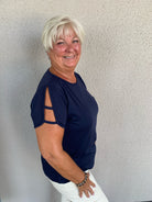 Knit Short Sleeve Tee with Cut Out Sleeve Detail