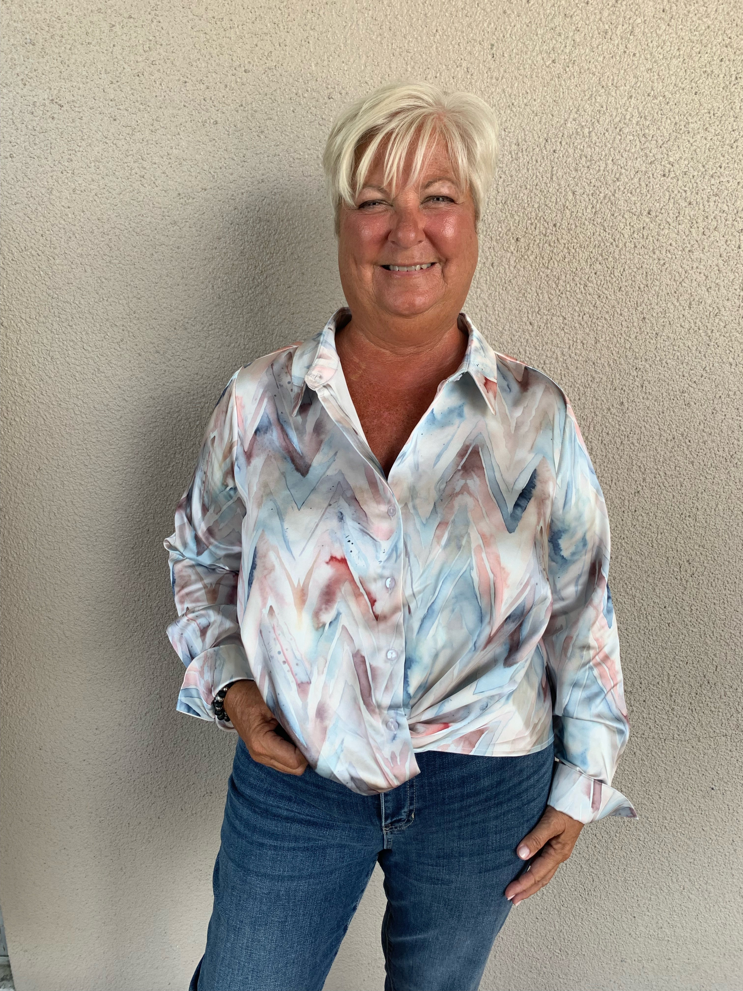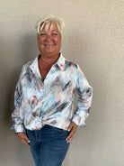 Elevate your wardrobe with this Long Sleeve Button Front Top featuring a stylish twisted front detail. Crafted from a comfortable blend of 97% polyester and 3% spandex, it offers a flattering fit with just the right amount of stretch. Perfect for both casual outings and polished looks, this top combines effortless style with all-day comfort.