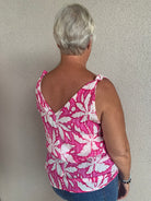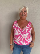 Bring a touch of tropical flair to your wardrobe with the Palm Print Tie Shoulder Tank. This vibrant tank top features a lively palm print that captures the essence of summer. Designed with adjustable tie straps, it offers a customizable fit while adding a playful, feminine touch to the design.