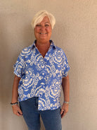 Add a touch of modern sophistication to your wardrobe with this Geo Print Button-Down Shirt. Featuring a sharp collar and a bold geometric print, this short-sleeve shirt offers a fresh, contemporary look. Its lightweight, breathable fabric blend and loose fit ensure all-day comfort while maintaining a polished silhouette. Perfect for both work and weekend wear, this versatile shirt pairs effortlessly with tailored trousers, denim, or even shorts for a stylishly relaxed vibe.