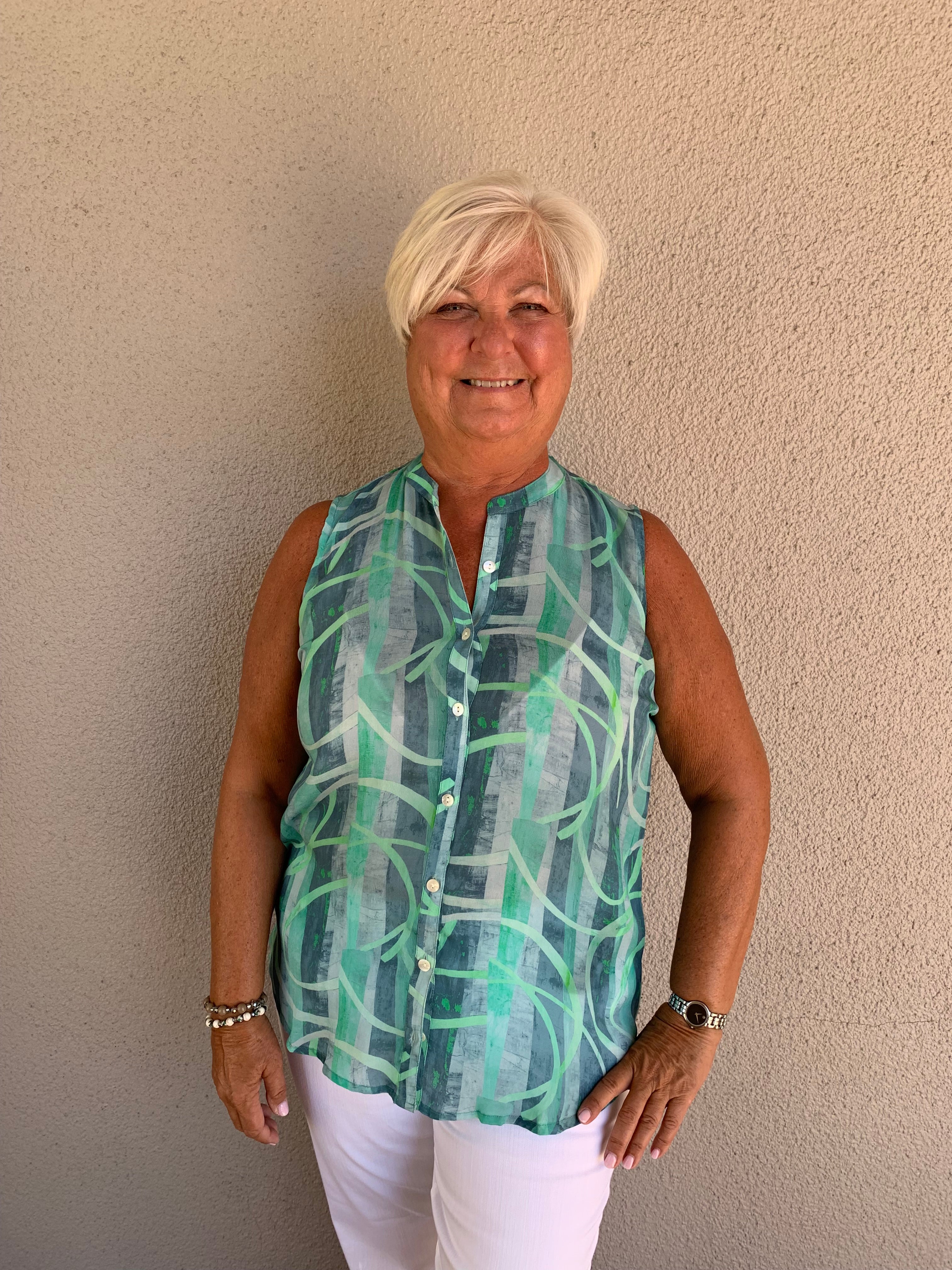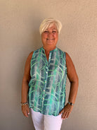 Printed Sleeveless Button Front Tank
