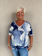 Printed V-Neck Short Sleeve Top with Twisted Front